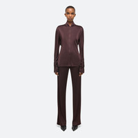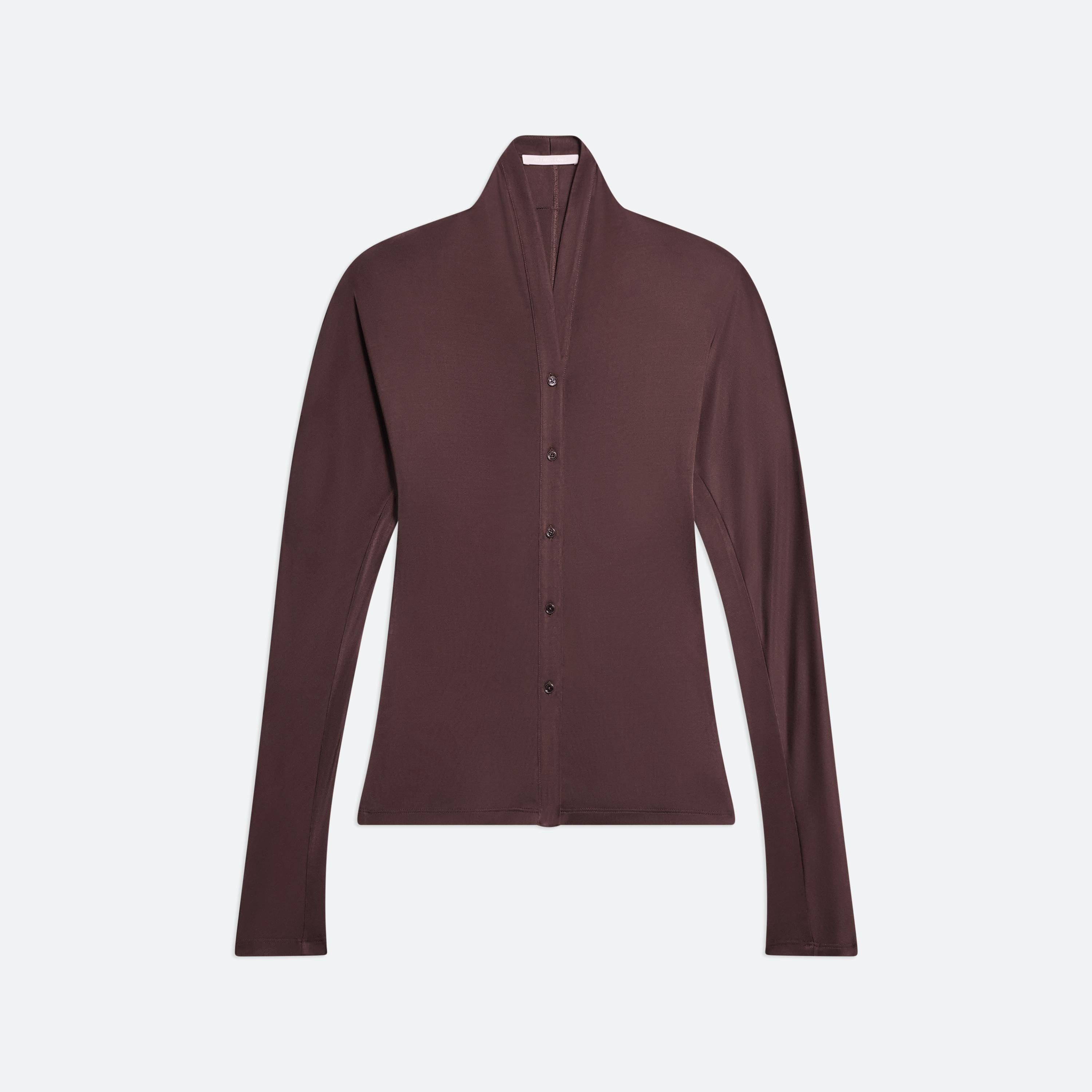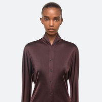 Long-sleeved blouse in fluid Italian viscose jersey. A looped button placket creates multiple ways to wear and layer. Fits true to size. Model is 5’10” and wears size S DETAILS - Long sleeves - Button front closure - Dolman sleeves - Fit slims through hem and sleeve - O06HW501 MATERIALS & CARE - Composition: 100% Viscose - Machine wash cold with like colors. Do not bleach. Do not tumble dry. Lay flat to dry.cool iron i f needed. Do not dry clean. - Finished Garment Manufacturing Country/Region: China - Fabric Production Country/Region: Italy - Weaving Country/Region: (of fabric) Italy - Dyeing Country/Region: (of fabric) Italy - Finishing Country/Region: (of fabric) Italy