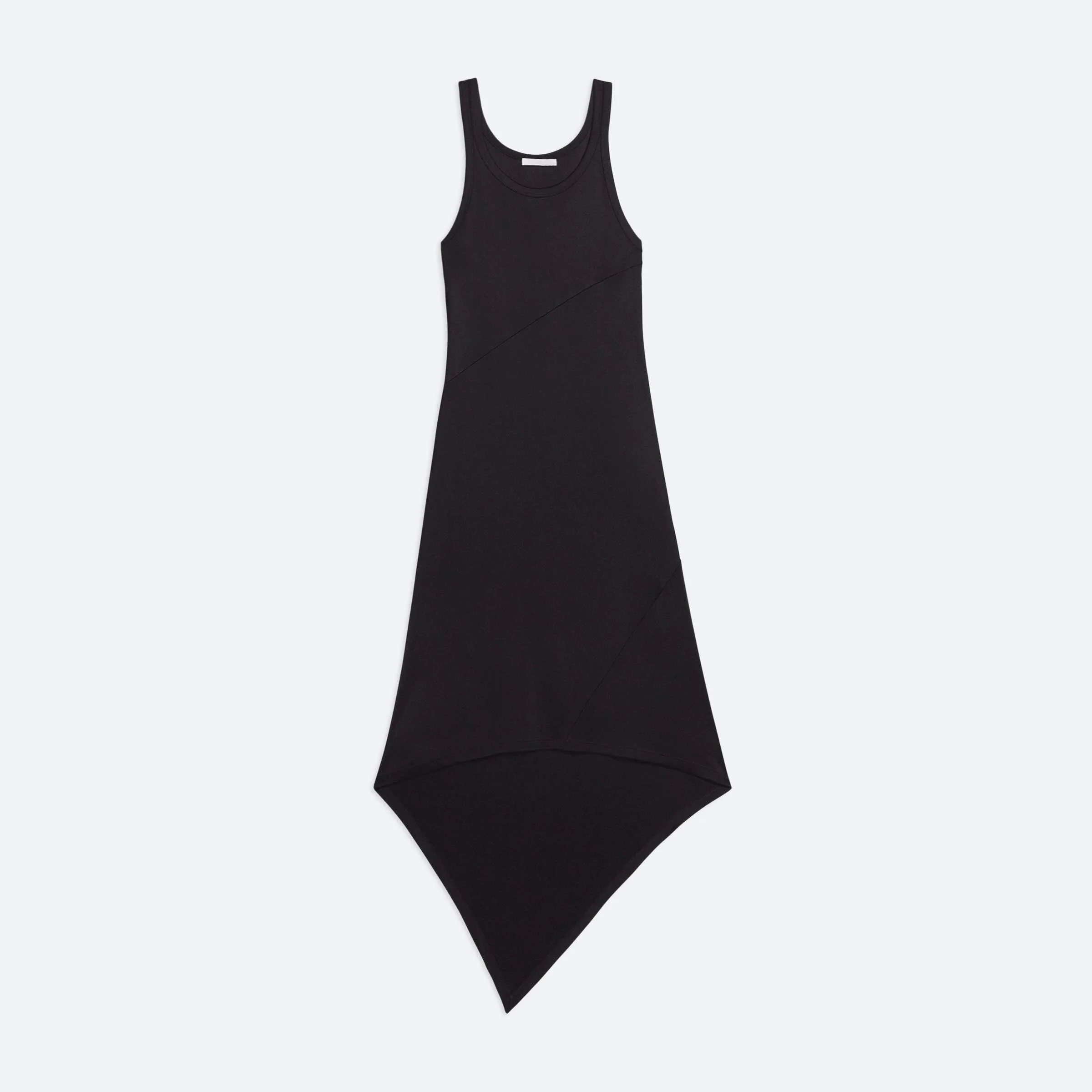 Sleeveless dress in a fluid Italian viscose jersey. Cut to wrap around the body, with a slim fit on top and relaxed cut through the body that flows into a scarf hem. Fits true to size. Model is 5’9” and is wearing size S DETAILS - Scooped neck - Sleeveless - Wrapped seam detail - Asymmetrical hemline - Relaxed fit - O02HW602 MATERIALS & CARE - Composition: 100% Viscose - Professional dry clean only. Cool iron if needed. - Finished Garment Manufacturing Country/Region: China - Fabric Production Country/Region: Italy - Weaving Country/Region: (of fabric) Italy - Dyeing Country/Region: (of fabric) Italy - Finishing Country/Region: (of fabric) Italy