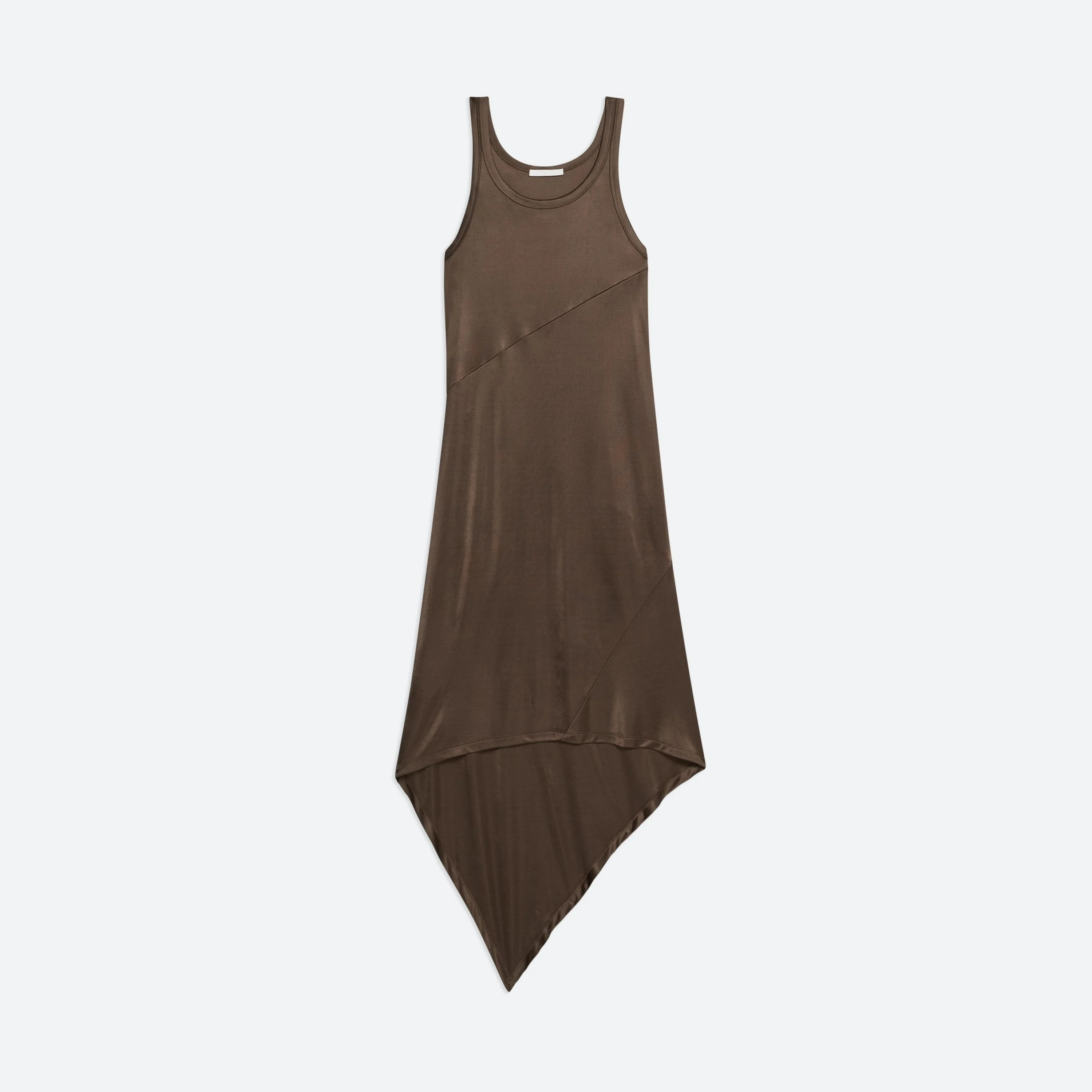 Sleeveless dress in a fluid Italian viscose jersey. Cut to wrap around the body, with a slim fit on top and relaxed cut through the body that flows into a scarf hem. Fits true to size. Model is 5’9” and is wearing size S DETAILS - Scooped neck - Sleeveless - Wrapped seam detail - Asymmetrical hemline - Relaxed fit - O02HW602 MATERIALS & CARE - Composition: 100% Viscose - Professional dry clean only. Cool iron if needed. - Finished Garment Manufacturing Country/Region: China - Fabric Production Country/Region: Italy - Weaving Country/Region: (of fabric) Italy - Dyeing Country/Region: (of fabric) Italy - Finishing Country/Region: (of fabric) Italy