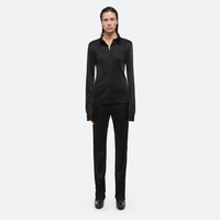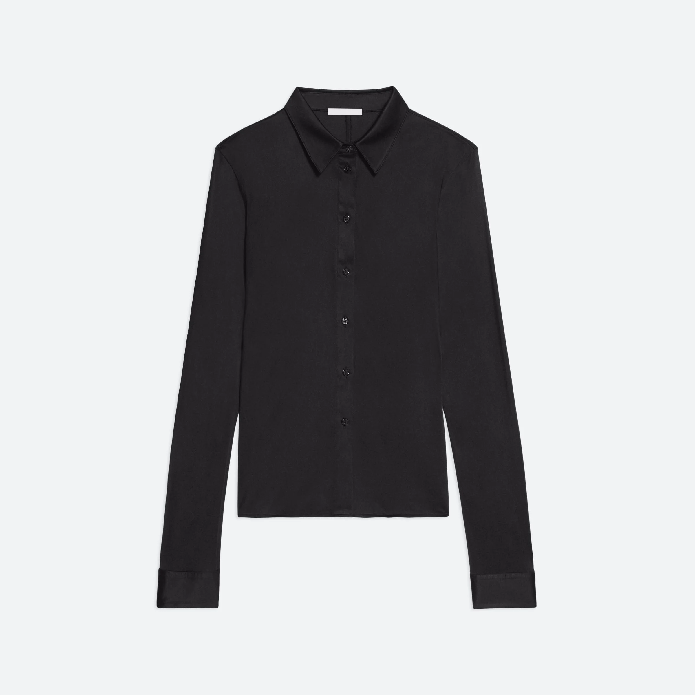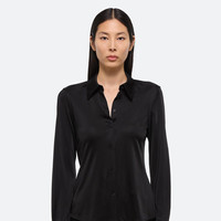 Classic slim fit shirt in fluid Italian viscose jersey. Matches the Fluid Car Trouser. Fits true to size. Model is 5’11” and wears size S. DETAILS - Pointed collar - Long sleeves - Button front closure and cuffs - Slim fit - Flat seams - O02HW515 MATERIALS & CARE - Composition: 100% viscose - Professional dry clean only. Cool iron if needed. - Finished Garment Manufacturing Country/Region: China - Fabric Production Country/Region: Italy - Weaving Country/Region: (of fabric) Italy - Dyeing Country/Region: (of fabric) Italy - Finishing Country/Region: (of fabric) Italy