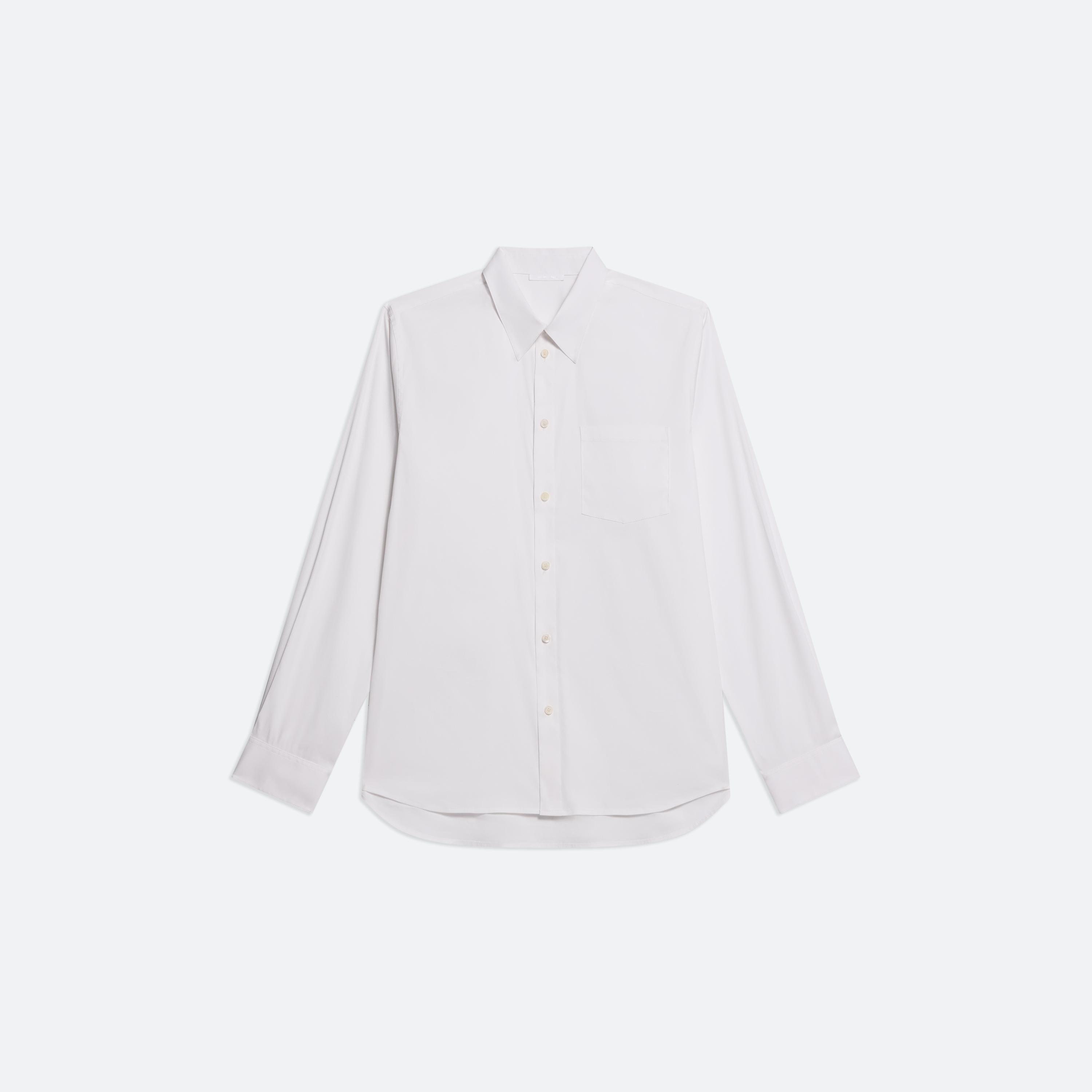 Classic shirt in stretch cotton poplin. Tonal logo text screen-printed across the shoulders adds a subtle contrast in texture. Fits true to size. Model is 6’2” and wears size M DETAILS - Pointed collar - Long sleeves - Front patch pocket - Button front closures - Relaxed fit - O06HM508 MATERIALS & CARE - Composition: 78% Cotton, 19% Nylon, 3% Spandex - Machine wash cold inside out with like colors. Do not bleach. Do not tumble dry. Lay flat to dry. Cool iron if needed. Do not dry clean. - Finished Garment Manufacturing Country/Region: China - Fabric Production Country/Region: Korea (South) - Weaving Country/Region: (of fabric) Korea (South) - Dyeing Country/Region: (of fabric) Korea (South) - Finishing Country/Region: (of fabric) Korea (South)
