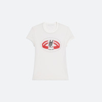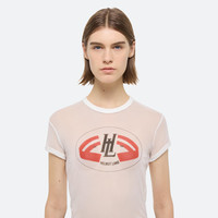 Slim-fit tee in a lightweight sheer mesh. Features a logo design inspired by the archive. Fits true to size. Model is 5’10” and wears size S. DETAILS - Crewneck baby tee - Cap sleeves - Rib knit cuffs and collar - Screen-printed logo - Slim fit - P02HW505 MATERIALS & CARE - Composition: 100% polyamide - Hand wash cold, wash inside out, do not bleach, do not tumble dry, cool iron if needed, do not iron on print, do not dry clean, lay flat to dry - Finished Garment Manufacturing Country/Region: Portugal - Fabric Production Country/Region: Portugal - Dyeing Country/Region: (of fabric) Portugal - Finishing Country/Region: (of fabric) Portugal