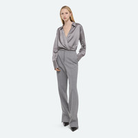 Straight-leg trousers in a double-faced wool blend. Cut with a relaxed fit and finished with a minimal waistband. Matches the Shawl Apex Blazer. Fits true to size. Model is 5'10" and wears size 2. DETAILS - Low-rise - Zip fly with hook and bar closure - Pintucked crease on front - Slip pockets on sides - Welt back pockets with metal logo clip - Vent at ankles - 33 ½” inseam and 17” leg opening - P07HW201 MATERIALS & CARE - Composition: 59% polyester, 22% virgin wool, 17% viscose, 2% elastane - Professional dry clean only. - Finished Garment Manufacturing Country/Region: Vietnam - Fabric Production Country/Region: Bulgaria - Weaving Country/Region: (of fabric) Bulgaria - Dyeing Country/Region: (of fabric) Bulgaria - Finishing Country/Region: (of fabric) Bulgaria