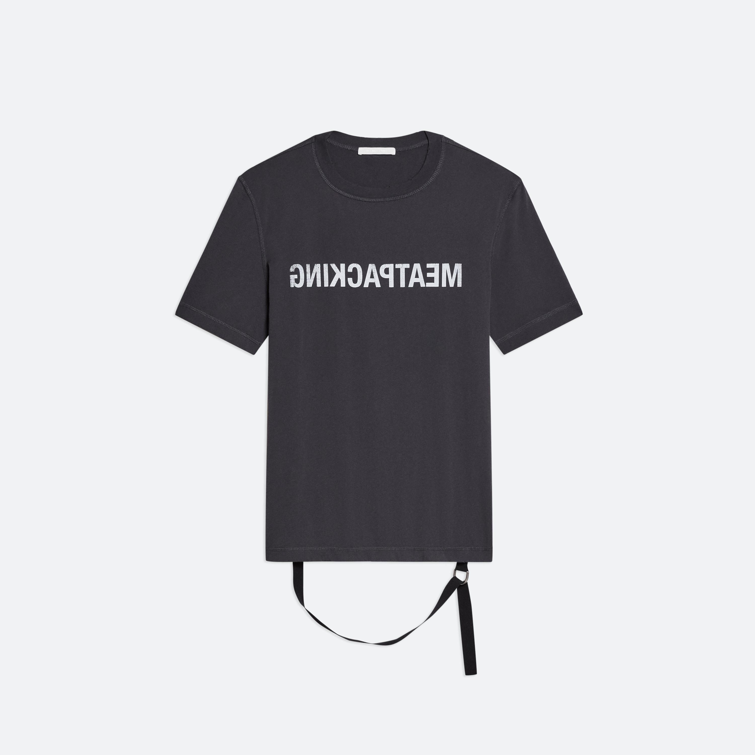 Lightweight crewneck tee in a relaxed fit, with adjustable seatbelt tape at hem. Distressed detailing creates the feeling of a long-time favorite. Fits true to size. Model is 6'1” and wears size M. DETAILS - Crewneck - Short sleeves - Distressed detailing at neck, sleeves, and hem - Logo text on front and back - Tonal seatbelt detail at hem - O10HM514 MATERIALS & CARE - Composition: 100% Cotton - Machine wash cold inside-out with like colors. Do not bleach. Do not tumble dry. Lay flat to dry. Cool iron if needed. Do not iron on print. Do not dry clean. - Finished Garment Manufacturing Country/Region: Portugal - Fabric Production Country/Region: Portugal - Weaving Country/Region: (of fabric) Portugal - Dyeing Country/Region: (of fabric) Portugal - Finishing Country/Region: (of fabric) Portugal