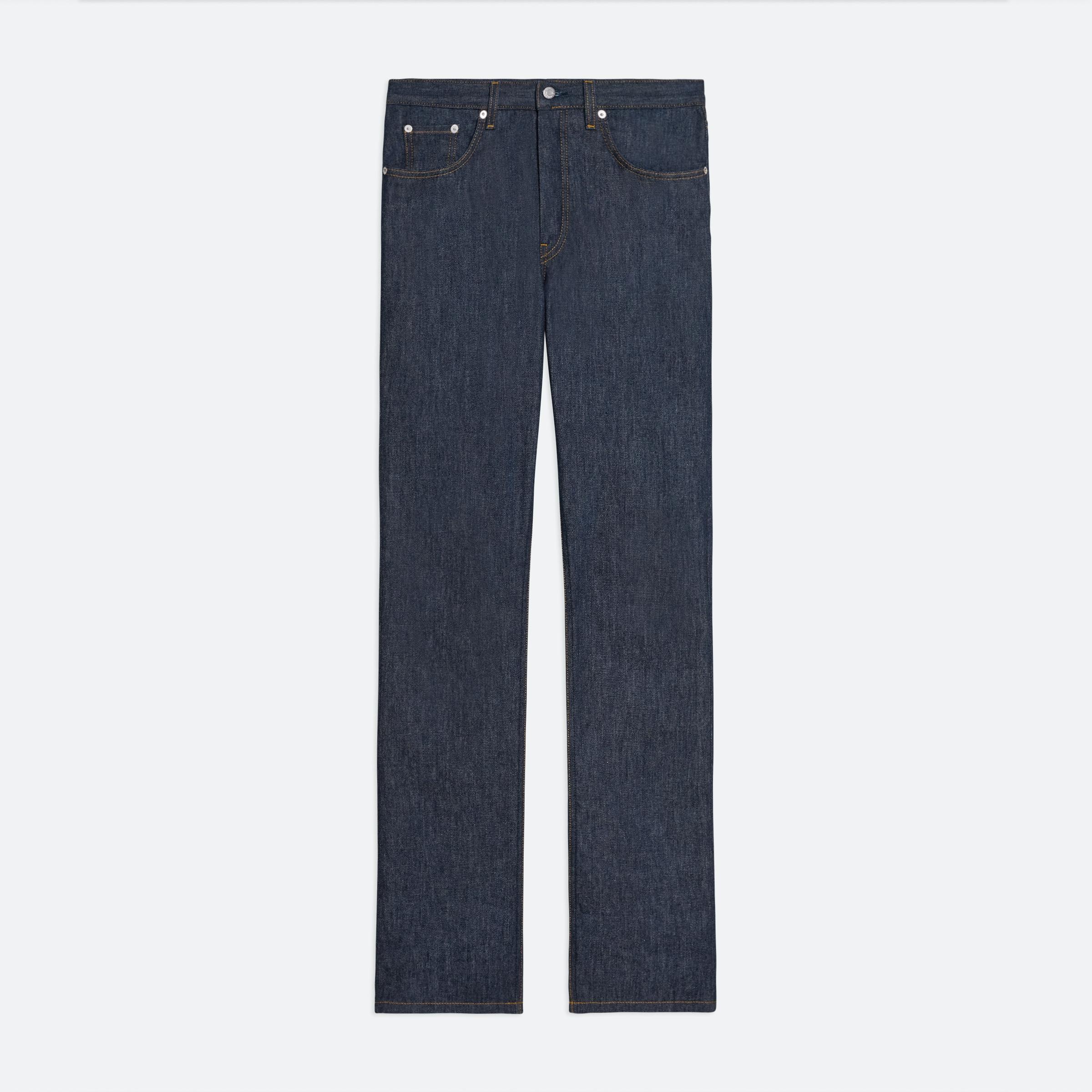 Mid rise five pocket jeans in raw indigo denim. These jeans are a classic denim cut with a slim leg. Fits true to size. Model is 6’1” and is wearing size 26 DETAILS - Button-zip fly - Belt loops - 5-pocket style - Relaxed fit - O02DW202 MATERIALS & CARE - Composition: 100% Cotton - Machine wash cold inside out with like colors - Do not bleach, tumble dry, or dry clean - Lay flat to dry - Cool iron if needed - Finished Garment Manufacturing Country/Region: Vietnam - Fabric Production Country/Region: Italy - Weaving Country/Region: (of fabric) Italy - Dyeing Country/Region: (of fabric) Italy - Finishing Country/Region: (of fabric) Italy