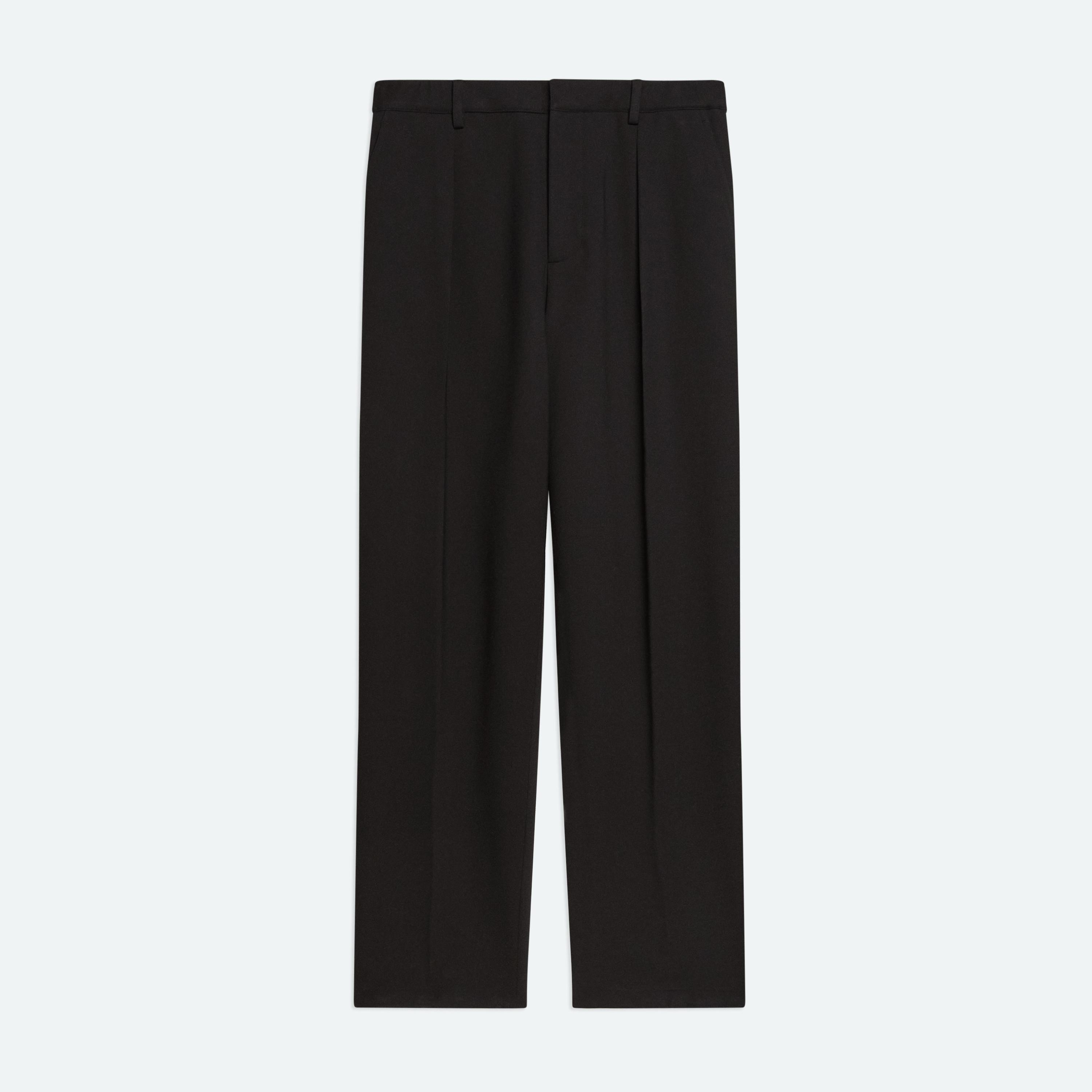 Trousers in a dense ponte. A front pleat and relaxed rise create a slight carrot shape. Matches the Modern Jacket. Fits true to size. Model is 6’2” and wears size 32. DETAILS - Belt loops - Single pleat at front - Zip fly with hook and bar closure - Side slip pockets - Back patch pockets with metal logo clip - Slight cropped length - Elastic waist at back - Relaxed fit with mid rise - 29” inseam and 15 ½” leg opening - P06HM201 MATERIALS & CARE - Composition: 68% rayon, 27% nylon, 5% spandex - Professional dry clean only. - Fabric Production Country/Region: China - Weaving Country/Region: (of fabric) China - Dyeing Country/Region: (of fabric) China - Finishing Country/Region: (of fabric) China
