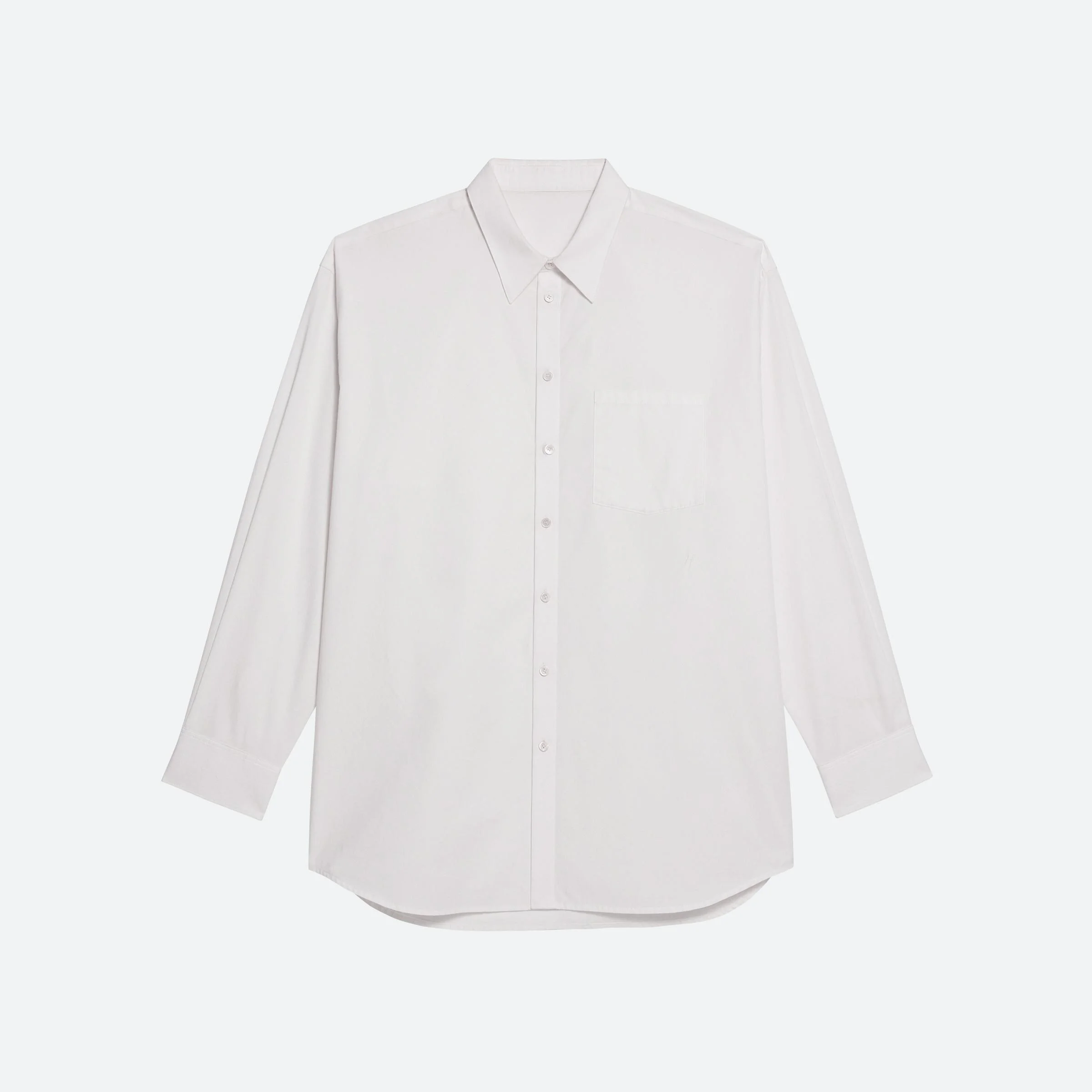 Oversized ultra soft cotton poplin shirt. RUNS LARGE. WE RECOMMEND SIZING DOWN FOR A MORE TAILORED FIT. Female Model is 5’9” and is wearing size S Male Model is 6’2” and is wearing size M DETAILS - Pointed collar - Front patch pocket - Long sleeves - Button front closures and cuffs - Oversized fit: for an oversized fit choose your normal size, for a more tailored look, we suggest sizing down - O01HW501 MATERIALS & CARE - Composition: 100% Cotton - Professional dry clean only - Finished Garment Manufacturing Country/Region: China - Fabric Production Country/Region: Japan - Weaving Country/Region: (of fabric) Japan - Dyeing Country/Region: (of fabric) Japan - Finishing Country/Region: (of fabric) Japan