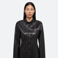 Relaxed button-front shirt in pleated leather. Matches the Pleated Leather Car Trouser. Fits true to size. Model is 5’11” and wears size S. DETAILS - 100% lambskin leather with pressed pleats - Pointed collar - Front snap closure - Front pocket with metal logo clip - Shirttail hem - Half lined - P02HW501 MATERIALS & CARE - Composition: 100% sheep leather; lining: 100% viscose - Professional leather clean only - Finished Garment Manufacturing Country/Region: India - Fabric Production Country/Region: India