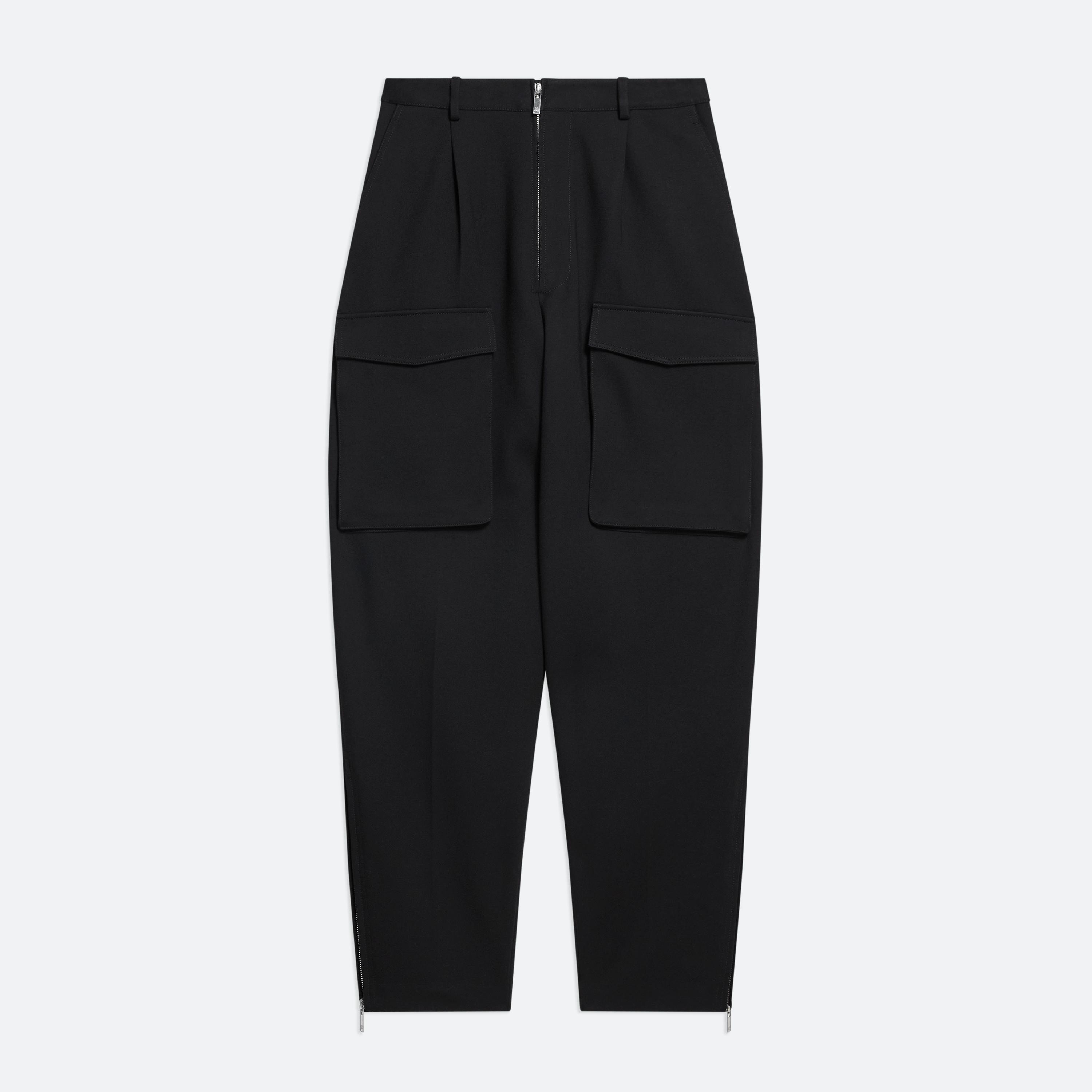 Relaxed jogger pants in dense ponte, with a higher waist and fuller leg that creates a slight carrot shape. Open the ankle zippers for a bootcut style. Finished with utilitarian details pulled from flight suits, including dimensional front flap pockets and an exposed front zip. Fits true to size. Model is 6’2” and wears size 32 DETAILS - Pleats at front - Elasticized back waist - Exposed metal zipper closure - Metal zippers at ankle - 3D front flap pockets - Slip and patch pockets - Belt loops - Metal logo clip on back pocket - 31” inseam - Relaxed fit - O06HM204 MATERIALS & CARE - Composition: 75% Rayon, 20% Nylon, 5% Spandex - Machine wash cold gentle cycle with like colors. Do not bleach. Do not tumble dry, line dry. Cool iron if needed. Or dry clean. - Finished Garment Manufacturing Country/Region: China - Fabric Production Country/Region: China - Weaving Country/Region: (of fabric) China - Dyeing Country/Region: (of fabric) China - Finishing Country/Region: (of fabric) China