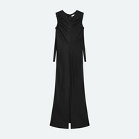 Bias-cut maxi dress in lightweight twill. Adjustable ruched detail on armholes with tonal elastic straps. Fits true to size. Model is 5'10" and wears size 2. DETAILS - High v-neck - Invisible zipper closure at back - Ruched armholes with elastic straps - Maxi length - Slits in front and back - Slim fit - P06HW606 MATERIALS & CARE - Composition: 100% rayon - Professional dry clean only. - Finished Garment Manufacturing Country/Region: China