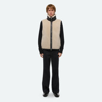 Reversible shearling vest with contrasting collar. Fits true to size. Model is 6'2" and wears size M. DETAILS - Funnel neck - 2-way front zipper closure - In-seam pockets on both faces - Reversible styling - Leather-bound seam detail - P09HM101 MATERIALS & CARE - Composition: 100% lamb shearling - Professional fur clean only. - Fabric Production Country/Region: Turkey - Weaving Country/Region: (of fabric) Turkey - Dyeing Country/Region: (of fabric) Turkey - Finishing Country/Region: (of fabric) Turkey