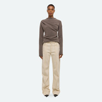 Relaxed jeans with an articulated knee and seam detail inspired by winter performance gear. Matches the Classic Trucker Jacket. Fits true to size. Model is 5'11" and wears size 26. DETAILS - Front seams curve around the knee - Zip fly with button closure - Classic five-pocket style - Belt loops - Leather logo patch on back - Straight leg with a slight flare - Relaxed fit - 100% cotton denim - 33” inseam and 21 ¾” leg opening - P09DW206 MATERIALS & CARE - Composition: 100% organic cotton - Machine wash cold, gentle cycle, with like colors. Wash inside-out. Do not bleach. Hang to dry in shade. Cool iron if needed. Dry clean with any solvent except trichloroethylene. Do not tumble dry. - Fabric Production Country/Region: Italy - Weaving Country/Region: (of fabric) Italy - Dyeing Country/Region: (of fabric) Italy - Finishing Country/Region: (of fabric) Italy