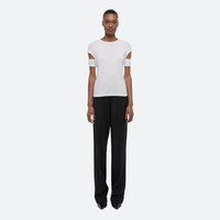 Slim-fit crewneck tee in ultra-soft cotton modal rib, featuring slashed sleeve detail. Fits true to size. Model is 6’1” and wears size S. DETAILS - Crewneck - Cap sleeve with slash detail - O09HW504 MATERIALS & CARE - Composition: 50% Modal, 50% Pima Cotton - Machine wash cold gentle cycle with like colors. Do not bleach. Tumble dry low. Cool iron if needed. Do not dry clean. - Finished Garment Manufacturing Country/Region: Peru - Fabric Production Country/Region: Peru - Weaving Country/Region: (of fabric) Peru - Dyeing Country/Region: (of fabric) Peru - Finishing Country/Region: (of fabric) Peru
