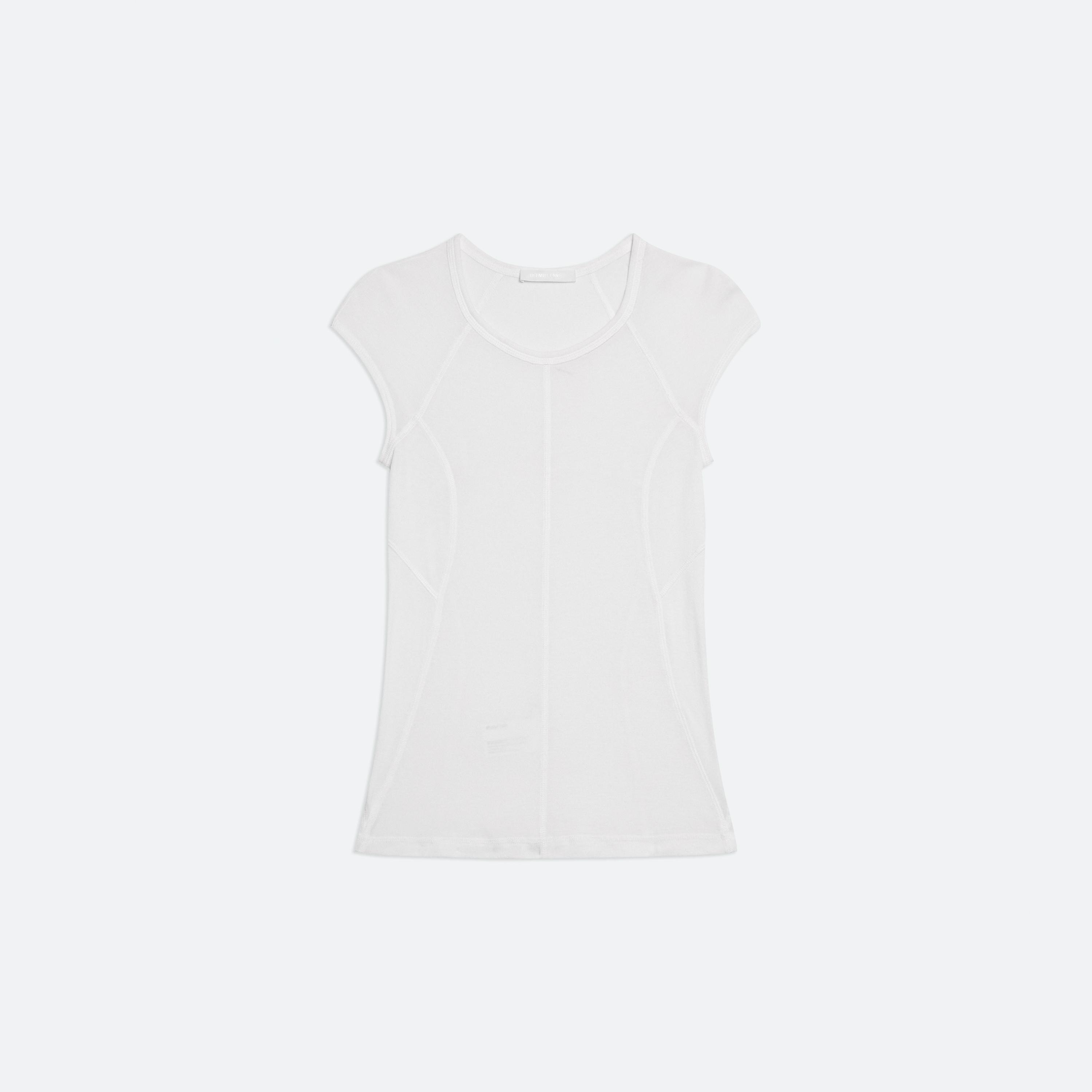 Cotton-modal tee in ultra-fine rib. Designed with a paneled construction that contours the body. Fits true to size. Model is 5’11” and wears size S. DETAILS - Crewneck - Raglan cap sleeves - Soft, compact rib knit - P02HW510 MATERIALS & CARE - Composition: 50% modal, 50% Pima cotton - Machine wash cold, gentle cycle, with like colors, do not bleach, tumble dry low, cool iron if needed, do not dry clean - Finished Garment Manufacturing Country/Region: Peru - Fabric Production Country/Region: Peru - Weaving Country/Region: (of fabric) Peru - Dyeing Country/Region: (of fabric) Peru - Finishing Country/Region: (of fabric) Peru