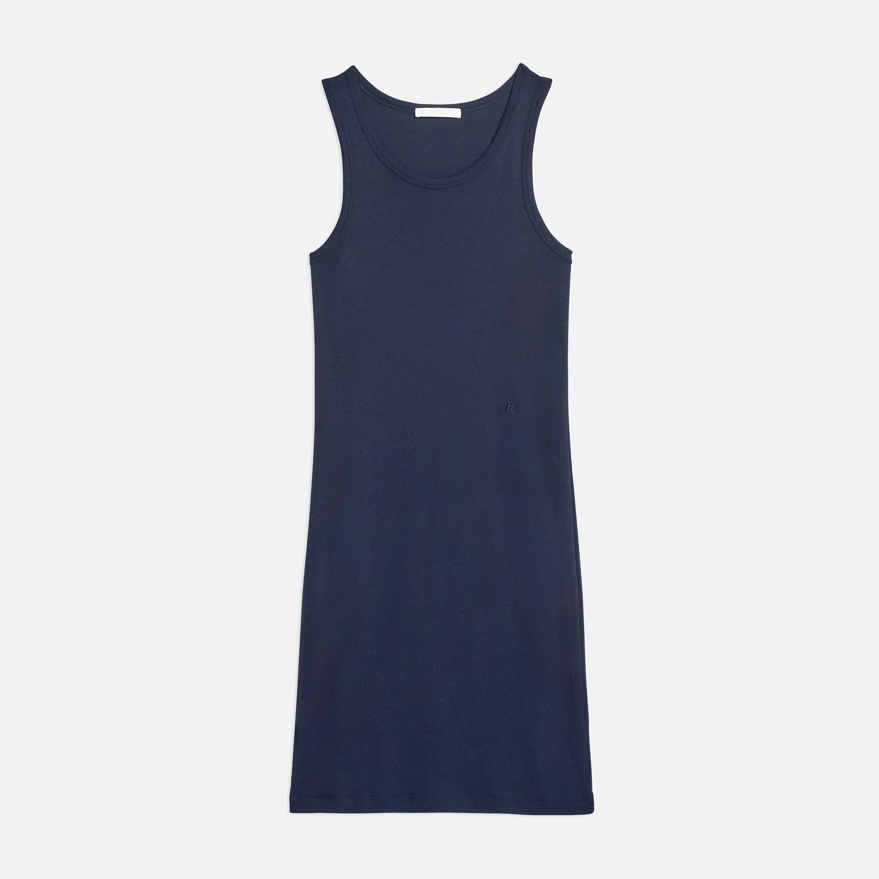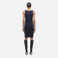 Supersoft Peruvian cotton-modal tank dress in ultra-fine rib. Fits close to the body with a slightly scooped neck. Fits true to size. Model is 5’9” and is wearing size S DETAILS - Scooped neck - Sleeveless style - Soft, compact rib knit - Tonal HL logo embroidered at front - O01HW609 MATERIALS & CARE - Composition: 50% Modal, 50% Pima Cotton - Machine wash cold gentle cycle with like colors. Do not bleach. Tumble dry low. Cool iron if needed. Do not dry clean. - Finished Garment Manufacturing Country/Region: Peru - Fabric Production Country/Region: Peru - Weaving Country/Region: (of fabric) Peru - Dyeing Country/Region: (of fabric) Peru - Finishing Country/Region: (of fabric) Peru