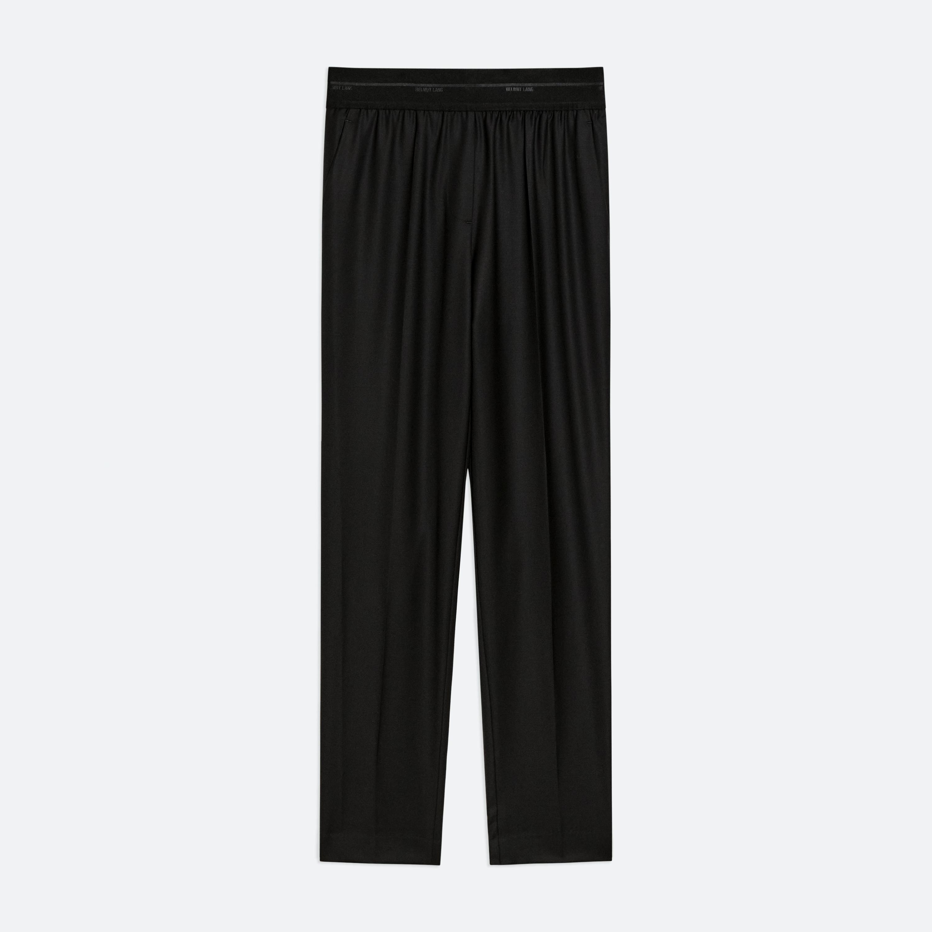 Tailored pull-on trousers with a tapered leg in wool twill. Matches the Waisted Classic Blazer. Fits true to size. Model is 5’10” and wears size 2. DETAILS - Flat knit waistband - Pressed crease - Slip pockets on sides - Welt back pockets with metal logo clip - Mid-rise - 29 ½” inseam and 14 ½” leg opening - P02HW203 MATERIALS & CARE - Composition: 100% wool - Do not wash, do not bleach, do not tumble dry, cool iron if needed, professional dry clean with petroleum solvent only - Finished Garment Manufacturing Country/Region: China - Fabric Production Country/Region: China - Weaving Country/Region: (of fabric) China - Dyeing Country/Region: (of fabric) China - Finishing Country/Region: (of fabric) China