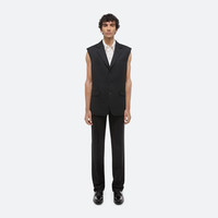 Classic sleeveless blazer vest in italian virgin wool with notched lapel and waist flap pockets. Fits true to size. Model is 6’2” and is wearing size 38 DETAILS - Notched lapels - Button front closures - Waist flap pockets - Relaxed fit - O02HM107 MATERIALS & CARE - Composition: 100% Virgin Wool - Professional dry clean only. - Finished Garment Manufacturing Country/Region: China - Fabric Production Country/Region: Italy - Weaving Country/Region: (of fabric) Italy - Dyeing Country/Region: (of fabric) Italy - Finishing Country/Region: (of fabric) Italy