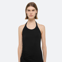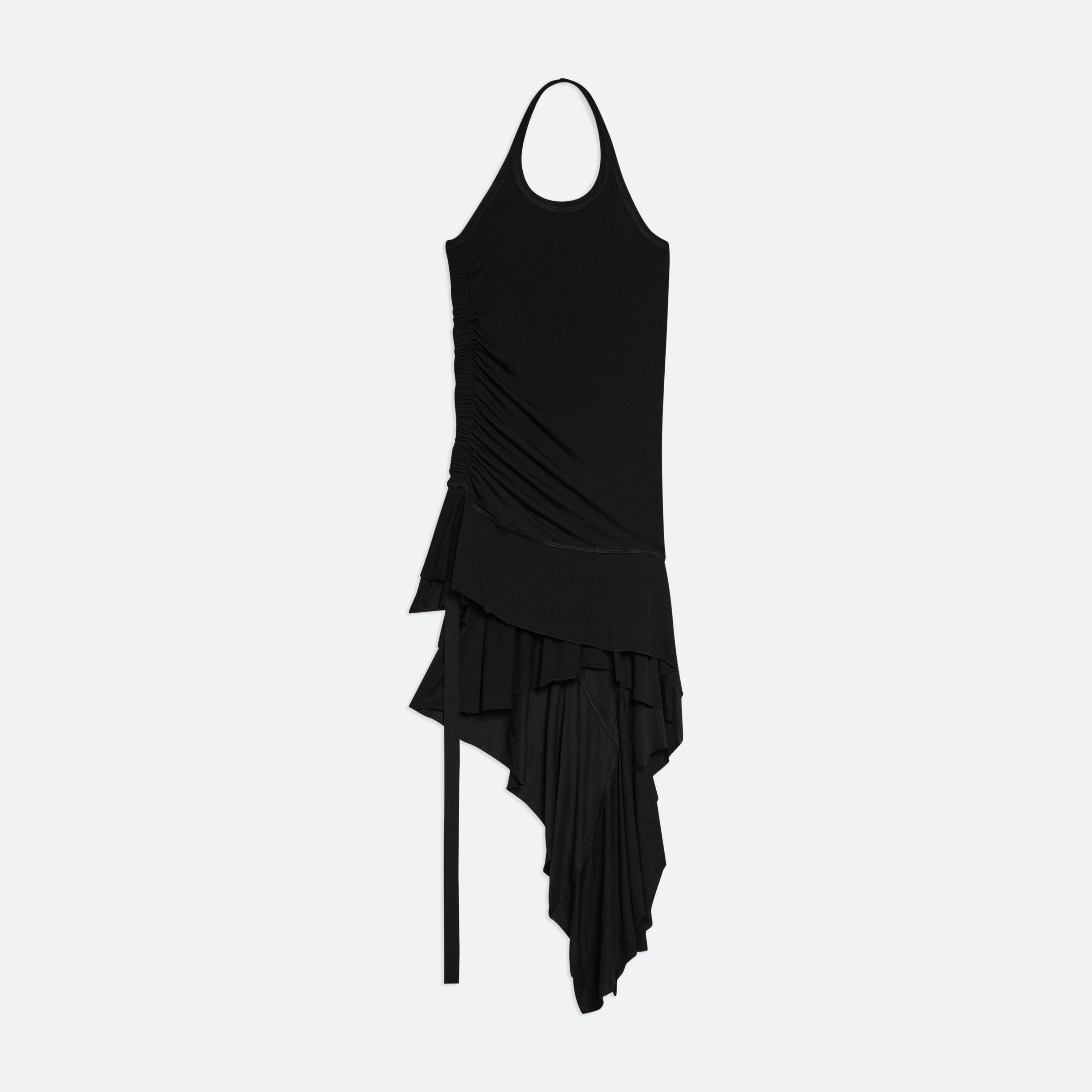 Halter-neck dress in soft lyocell jersey. Control the length using the signature seatbelt strap. Finished with an asymmetrical ruffled hem that adds movement to every step. Fits true to size. Model is 5’10” and wears size S. DETAILS - Halter neck - Layered ruffle hem - Asymmetrical skirt - Tonal seatbelt strap at right - P01HW603 MATERIALS & CARE - Composition: 94% lyocell, 6% elastane - Machine wash cold, gentle cycle, with similar colors, do not bleach, lay flat to dry in shade, do not tumble dry, cool iron if needed, do not dry clean - Finished Garment Manufacturing Country/Region: China - Fabric Production Country/Region: Portugal - Weaving Country/Region: (of fabric) Portugal - Dyeing Country/Region: (of fabric) Portugal - Finishing Country/Region: (of fabric) Portugal