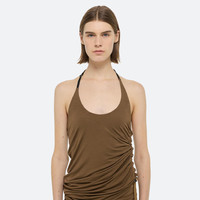 Halter-neck top in soft lyocell jersey. Use the signature seatbelt strap to control the length and create a draped look. Matches the Wind Mini Skirt. Fits true to size. Model is 5’11” and wears size S. DETAILS - Halter neck with adjustable strap - Asymmetrical neckline - Tonal elastic seatbelt at left - Open back - P01HW506 MATERIALS & CARE - Composition: 94% lyocell, 6% elastane - Machine wash cold, gentle cycle, with similar colors, do not bleach, lay flat to dry in shade, do not tumble dry, cool iron if needed, do not dry clean - Finished Garment Manufacturing Country/Region: China - Fabric Production Country/Region: Portugal - Weaving Country/Region: (of fabric) Portugal - Dyeing Country/Region: (of fabric) Portugal - Finishing Country/Region: (of fabric) Portugal