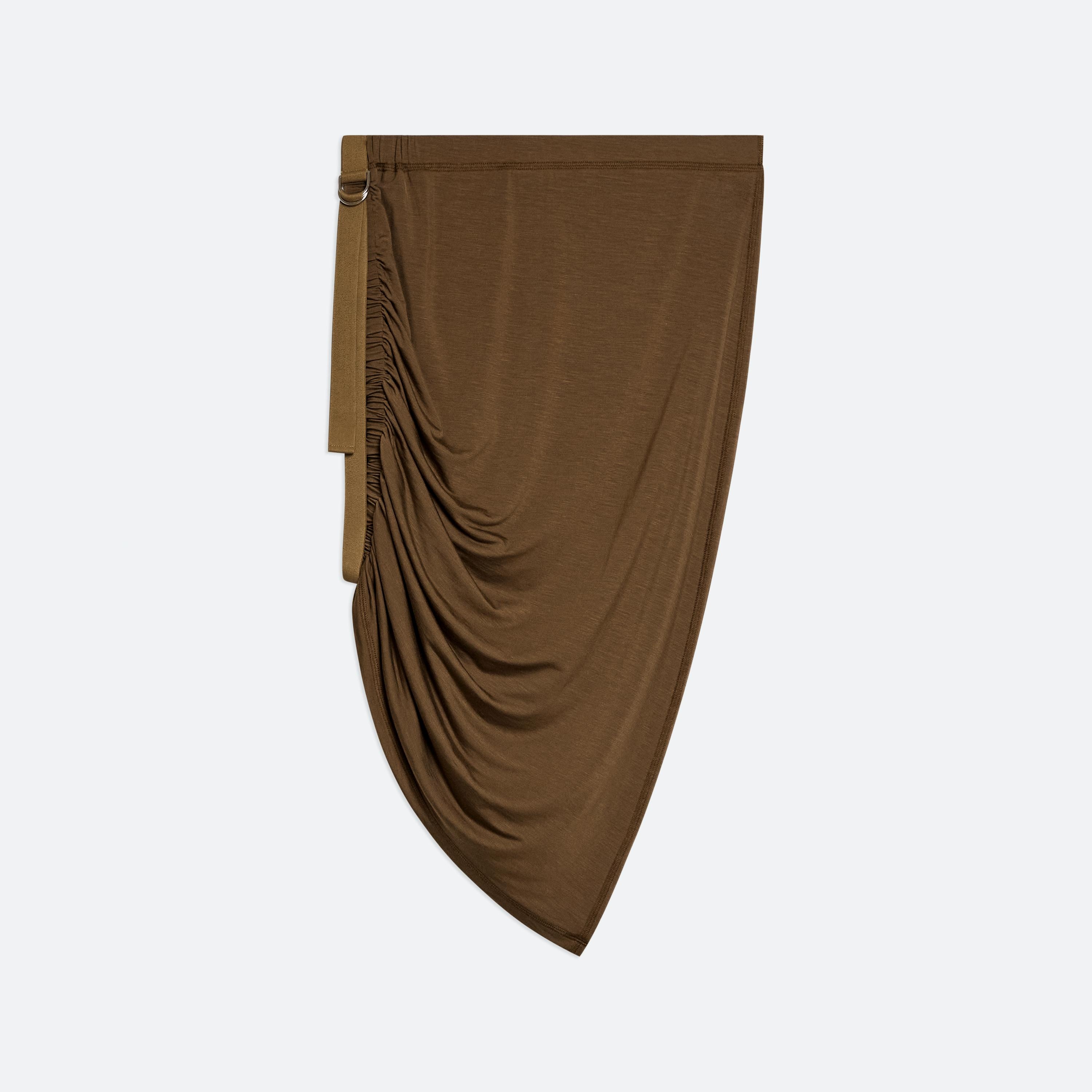 Draped skirt in soft lyocell jersey. Control the length of the skirt with our signature seatbelt strap to create an asymmetrical mini. Matches the Wind Harness Top. Fits true to size. Model is 5’10” and wears size S. DETAILS - Hidden elastic waist - Tonal elastic seatbelt at left - Ruched detail and D-ring anchor at right - P01HW301 MATERIALS & CARE - Composition: 94% lyocell, 6% elastane - Machine wash cold, gentle cycle, with similar colors, do not bleach, lay flat to dry in shade, do not tumble dry, cool iron if needed, do not dry clean - Finished Garment Manufacturing Country/Region: China - Fabric Production Country/Region: Portugal - Weaving Country/Region: (of fabric) Portugal - Dyeing Country/Region: (of fabric) Portugal - Finishing Country/Region: (of fabric) Portugal