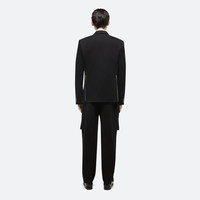 Classic blazer in structured ponte with notched lapels and flap pockets. Extended dual vents finished with zippers open to create a boxier fit. Fits true to size. Model is 6’2” and wears size M DETAILS - Notched lapels - Button-front closure - Flap pockets - Relaxed fit - Metal logo clip - Unlined - O06HM103 MATERIALS & CARE - Composition: 75% Rayon, 20% Nylon, 5% Spandex - Professional dry clean only. Do not steam. - Finished Garment Manufacturing Country/Region: China - Fabric Production Country/Region: China - Weaving Country/Region: (of fabric) China - Dyeing Country/Region: (of fabric) China - Finishing Country/Region: (of fabric) China