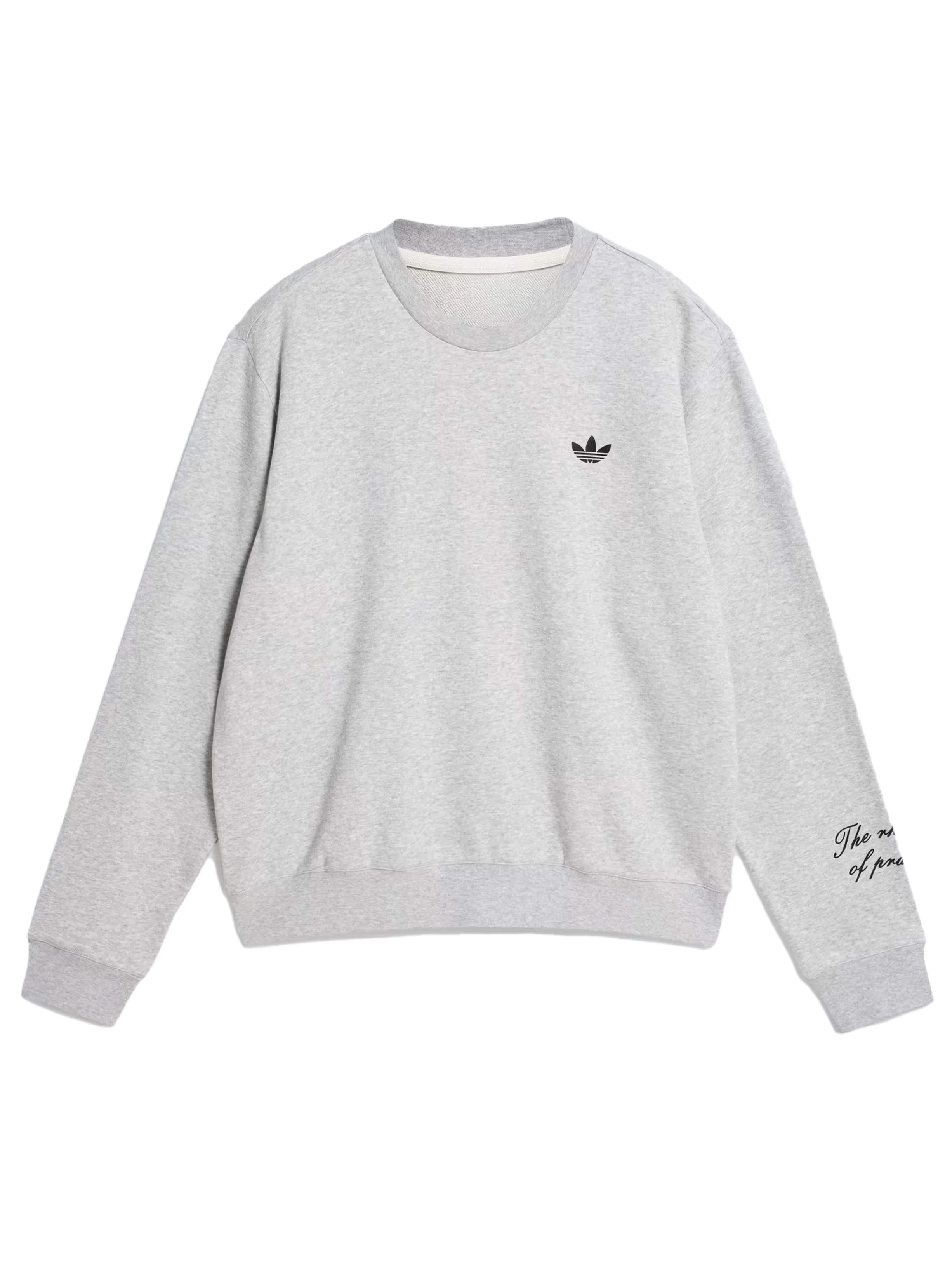 Long Sleeve Crew Neck in Grey from adidas Originals x Wales Bonner Highlights - grey - trefoil chest branding - graphic script print on arm "The Rhythm of Practice" - round neck - long sleeves For the SS24 season, the adidas Originals x Wales Bonner collection is inspired by the legacy of renown runner Haile Gebrselassie and Ethiopia. The collection presents a refined collection of pieces inspired by the sport of running and elevates the products with luxury materializations and prints and patterns. Designer ID: IW1172 Colour ID: Medium Grey Heather Materials 70% Cotton 30% Recycled Polyester Wipe surface stains with damp cloth.