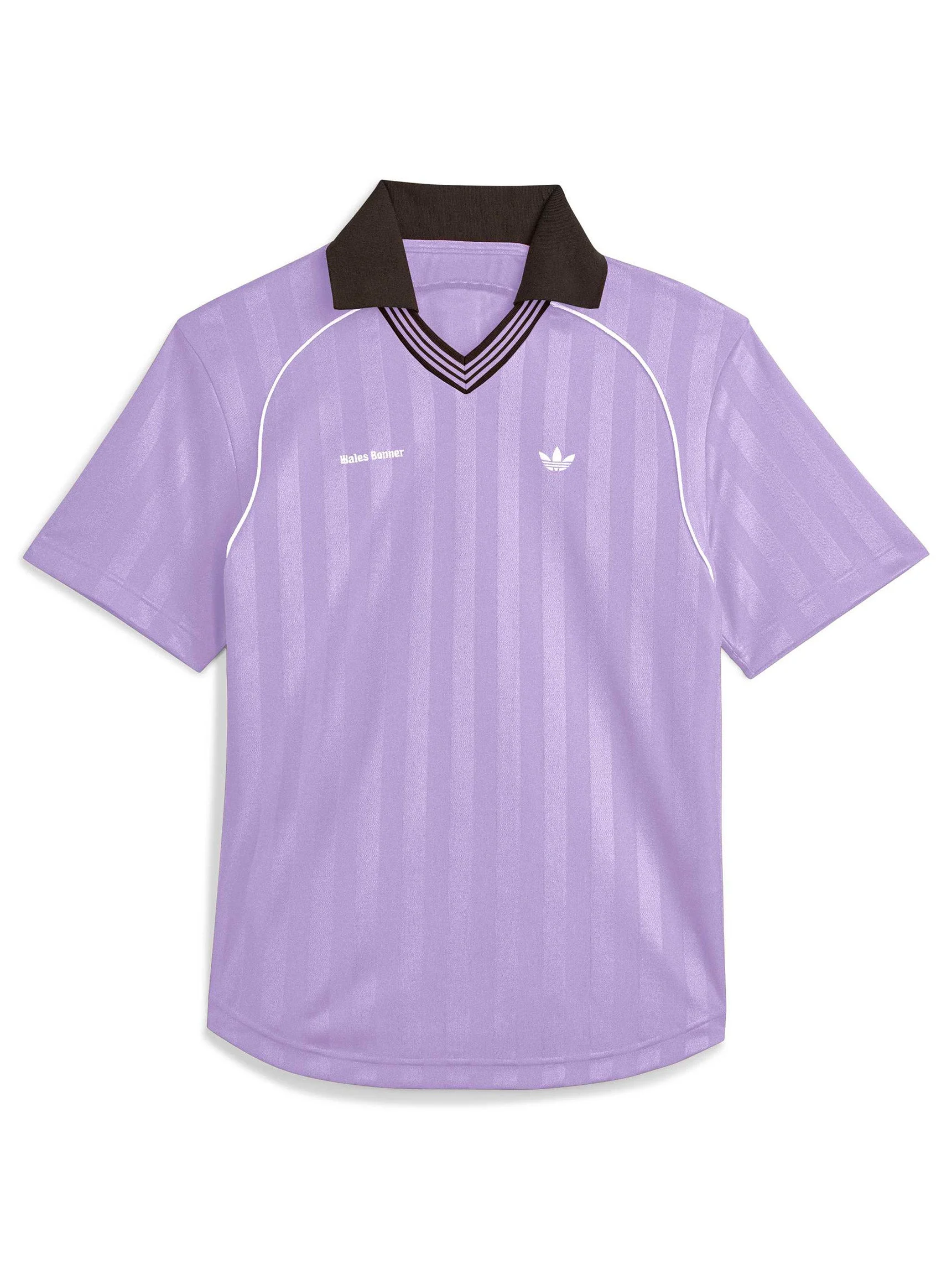 WB Football T-shirt in Light Purple from Adidas Originals x Wales Bonner Highlights - light purple - dark brown collar - v-neck - short sleeves - jacquard construction - regular fit Made in China Designer ID: KD0377 Materials 100% Recycled Polyester