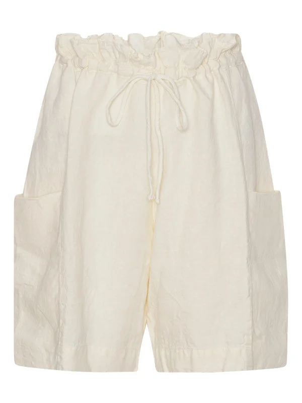 Parachute Shorts in Cream from Black Crane Highlights - cream white - shorts - pockets - drawstring - comfortable fit Care: cold machine or hand wash Made in USA Composition: 100% Linen Designer ID: L-PS18 Colour ID: Cream Materials 100% Linen cold machine / hand wash