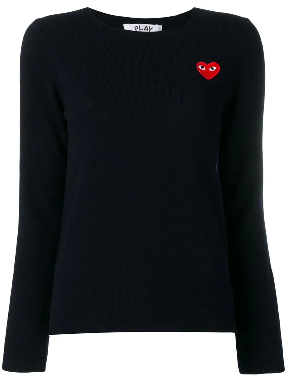Navy blue wool heart patch jumper. Featuring a crew neck, long sleeves and a straight hem. This Item Runs Small, Therefore We Recommend Taking One Size Up. Designer ID: P1N067