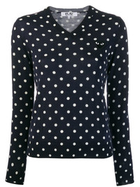 Navy Polka Dot V-Neck Sweater