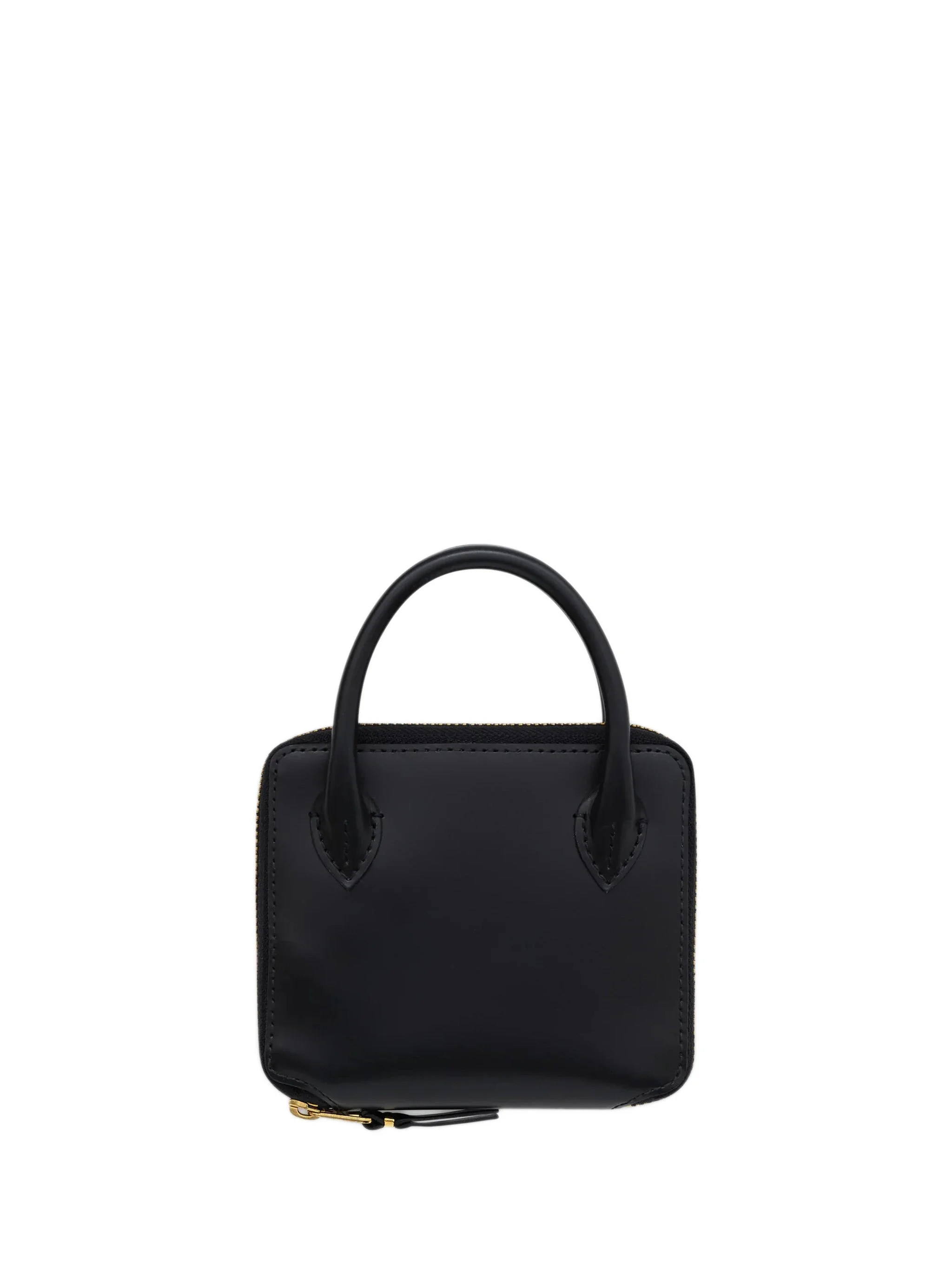 SA2100HA Wallet With Handles in Black from Comme des Garcons Wallet. Highlights - zip around closure - four card slots - coin compartment - notes pocket - 125mm x 105mm Made in Spain Designer ID: SA2100HA Colour ID: 1 BLACK Materials 100% CUIR DE VACHE