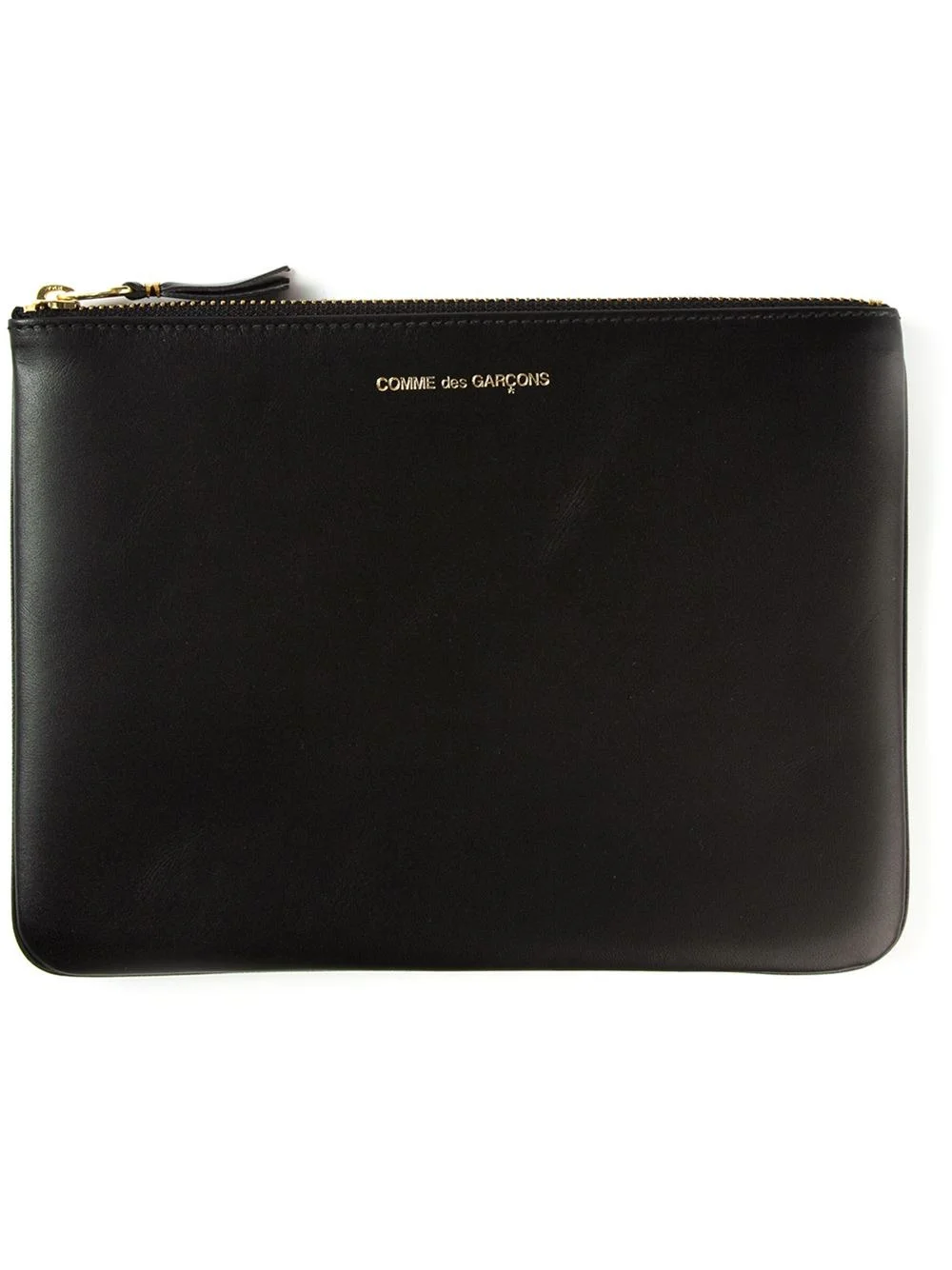 SA5100 Wallet in Black from Comme des Garcons Wallet Highlights - black - embossed logo stamp in the front - cold-tone top zip closure - clutch/wallet - one big compartment Measurements Length: 22 cm Width: 16 cm Thickness: 1.5 cm Made in Spain Designer ID: SA5100 Materials 100% Cowhide For surface stains, we recommend wiping with a damp cloth.