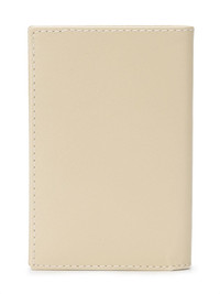 Off White Leather Flap Wallet by Comme des Garcons Wallet. Length: 7 cm Width: 10 cm Materials 100% Cowhide For surface stains, we recommend wiping with a damp cloth.