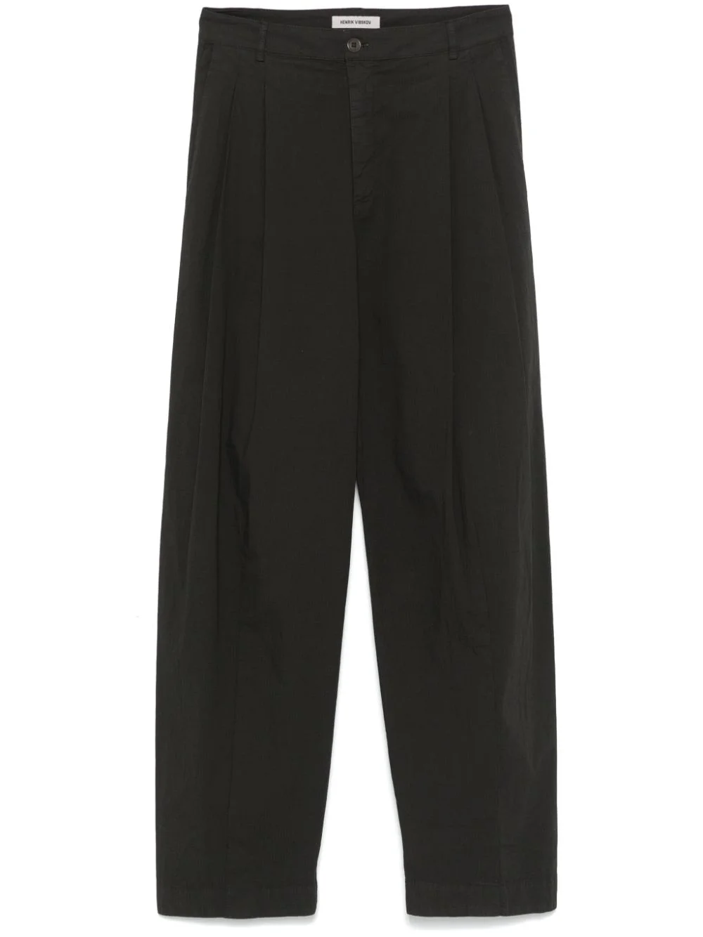 Claus Pants in Black from Henrik Vibskov's SS25 Studio Collection 'The Orchestra of the Soft Assistance' Highlights - black - small grid print - front button closure with belt loops - side pockets - ankle length The model is 186 cm and is wearing a size Medium Made in Bulgaria Designer ID: SS25STUD-M523 Colour ID: 999 Black Materials 100% Organic Cotton