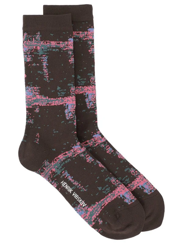 Screen Transparent Socks Femme in Black Green Transparent Blur Grid from Henrik Vibskov's AW24 Studio Collection 'Daily Chewing Gum Therapy' Highlights - brown, purple and pink - green and light blue details - womens - abstract print Made in Portugal Designer ID: AW24STUD-S917 Color ID: 951 Black Purple Transparent Blur Grid Materials 98% Polyamide 2% Elastane