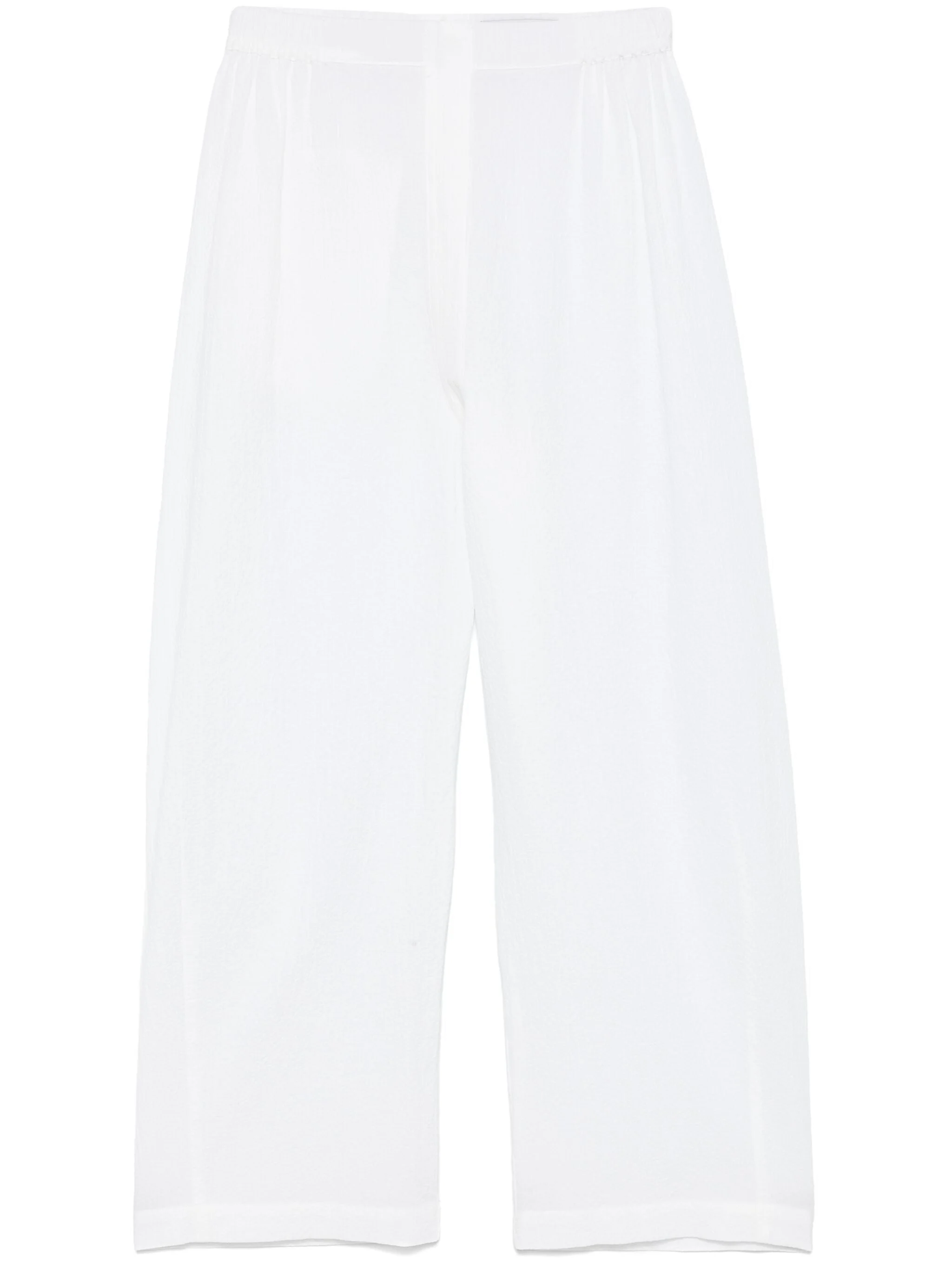 Split Pants in White from Henrik Vibskov's SS25 Studio Collection 'The Orchestra of the Soft Assistance' Highlights - white - straight legs - flowy design - elastic waistband Made in Bulgaria Designer ID: SS25STUD-F506 Colour ID: 101 White Materials 98% Organic Cotton 2% Elastane - Wash at max. 40 degrees - Do not bleach - Do not tumble dry - Iron at low temperature - Dry-Clean, normal cycle. Any solvent except trichloroethylene