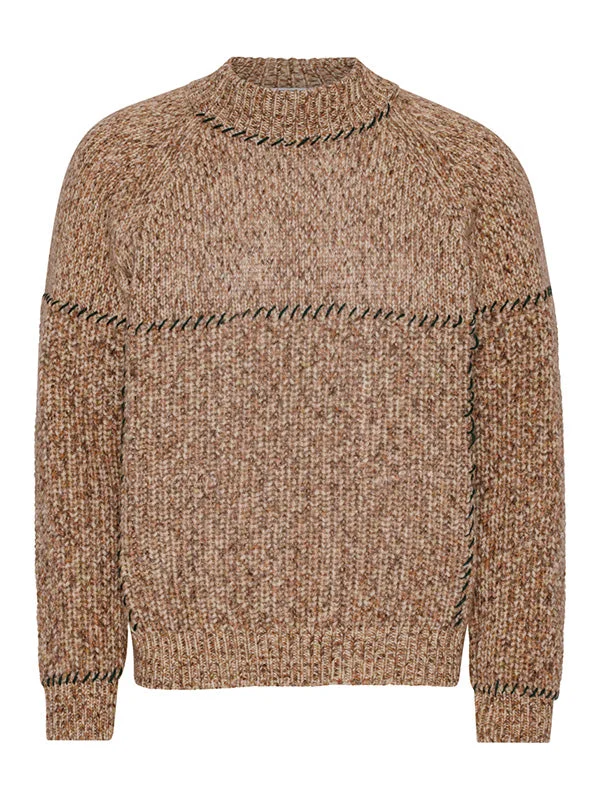 Stitch Jumper in Fall Mix from Henrik Vibskov's AW24 Studio Collection 'Daily Chewing Gum Therapy' Highlights - light brown - green stitching details - high neck - long sleeves - straight hem The Model is 188 cm and is wearing a size medium Made in Bulgaria Designer ID: AW24STUD-M701 Colour ID: 194 Fall Mix Materials 100% Wool