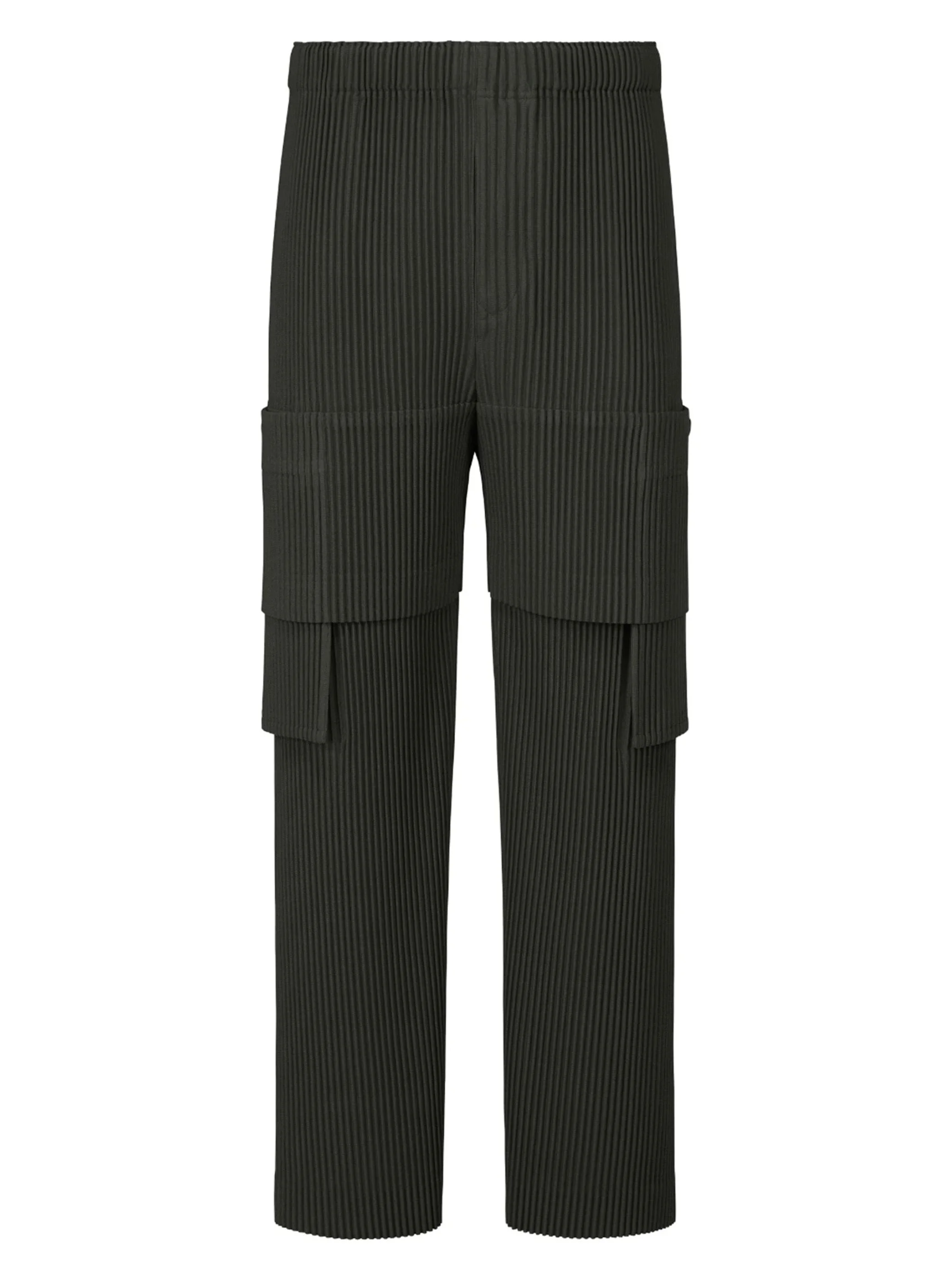 Multi-Pocket Pants in Coke Gray from Homme Plisse Issey Miyake Highlights - grey - elastic waistband - side pockets - two large cargo pockets - straight hem Made in Philippines Designer ID: HP58JF236 Colour ID: 13 Coke Gray Materials 100% POLYESTER