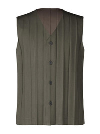 Edge Ensemble Vest in Dark Brown from Homme Plisse Issey Miyake Highlights - navy - full plisse - v-neck - front button closure - sleevesless - large pleats - straight hem Made in Philippines Designer ID: HP56FE261 Colour ID: 47-DARK BROWN Materials 100% POLYESTER