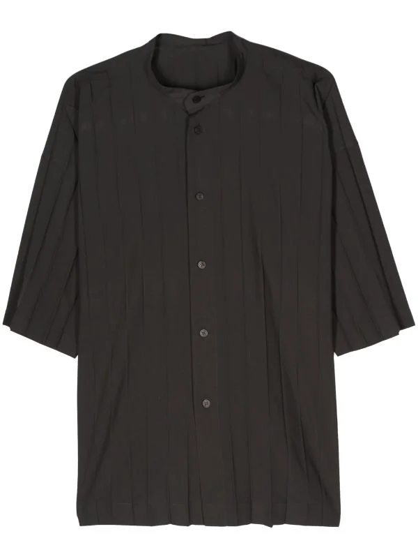 Edge Shirt in Charcoal from Issey Miyake Homme Plisse Highlights - light black - fully pleated - Edge pressed - short sleeves - buttons - large pleats Made in Philippines Composition: 100% Polyester Designer ID: HP46FJ341 14 Color ID: 14-CHARCOAL