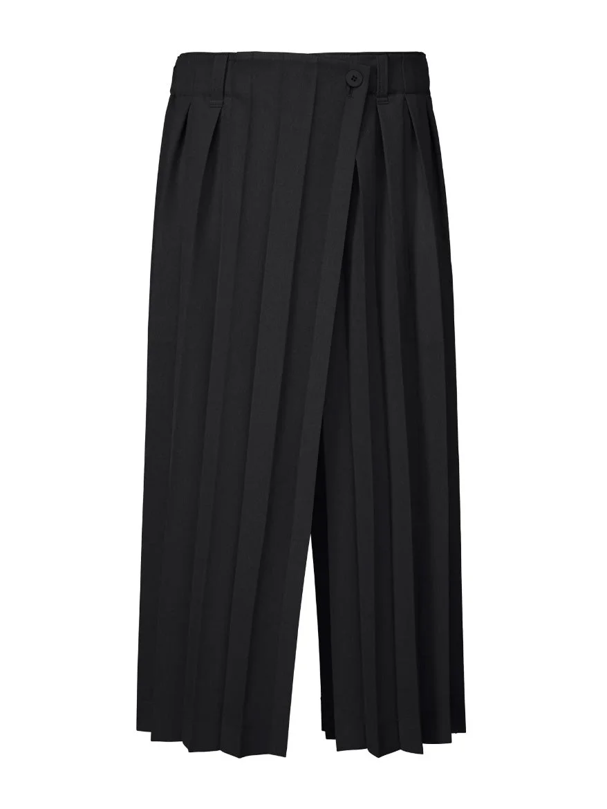 February SS26 Edge Ensemble Wide Pants in Black from Homme Plisse Issey Miyake Highlights - black - large plisse - wrap style - two side slit pockets - belt loops - 3/4 length Made in Philippines Designer ID: HP66FF178 Color ID: 15 Black Materials 100% POLYESTER Machine wash cold, gentle cycle. Non-chlorine bleach, only if necessary. Do not tumble dry. Line dry in the shade. Do not iron. Do not dry clean.