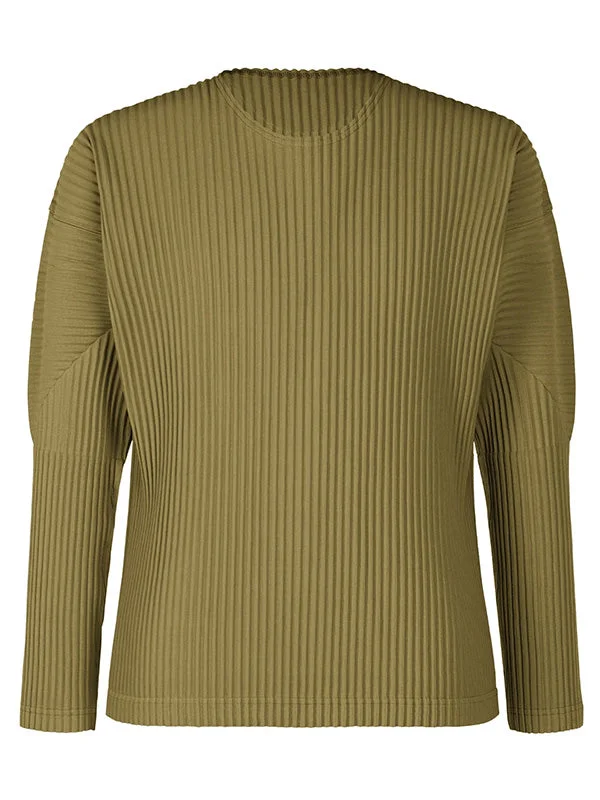 LONG-SLEEVE PLEATS T-SHIRT - OLIVE KHAKI