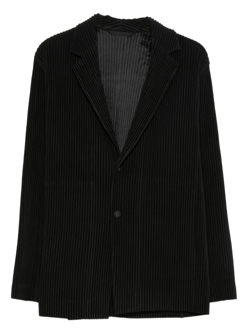 October AW25 Basic Jacket in Black from Homme Plisse Issey Miyake Highlights - black - full plisse - blazer collar - front button closure - long sleeves - straight hem Made in Philippines Designer ID: HP59JD501 Color ID: 15 Black Materials 100% POLYESTER