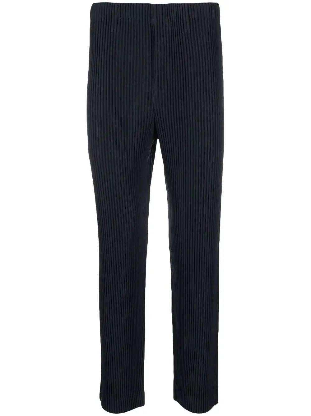Straight Pants in Navy from Issey Miyake Homme Plisse Highlights - navy blue - fully pleated - elasticated waistband - two side inset pockets - straight leg Made in Philippines Composition: 100% Polyester Designer ID: HP37JF350 Color ID: 75