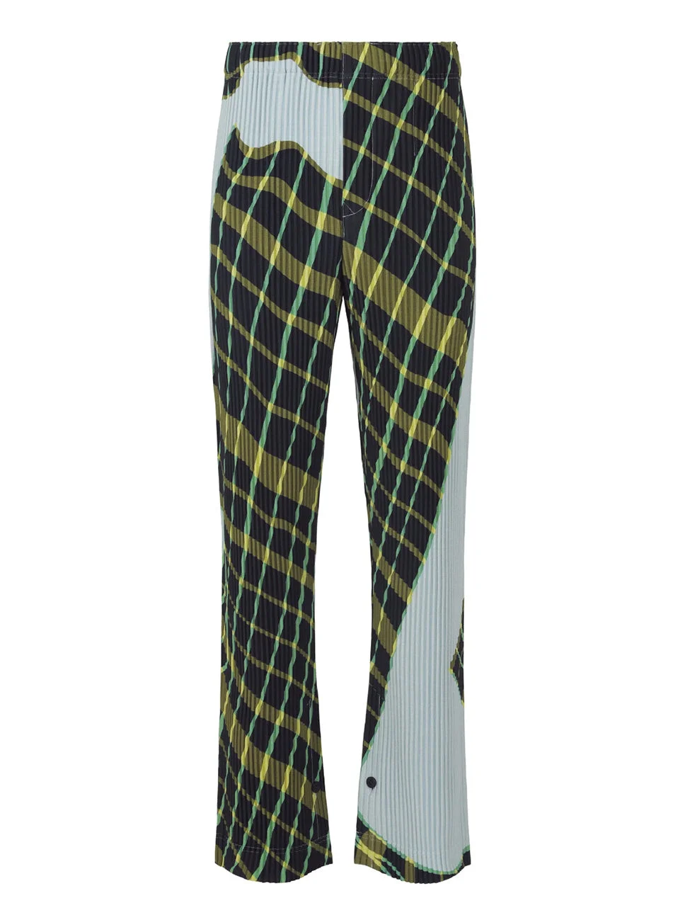 Windswept Plaid Pants in Blue Gray from Homme Plisse Issey Miyake Highlights - blue and gray - full plisse - wavy plaid lines - elastic waist - side pockets - straight legs Made in Japan Designer ID: HP56JF377 Colour ID: 77-BLUE GRAY Materials 100% POLYESTER