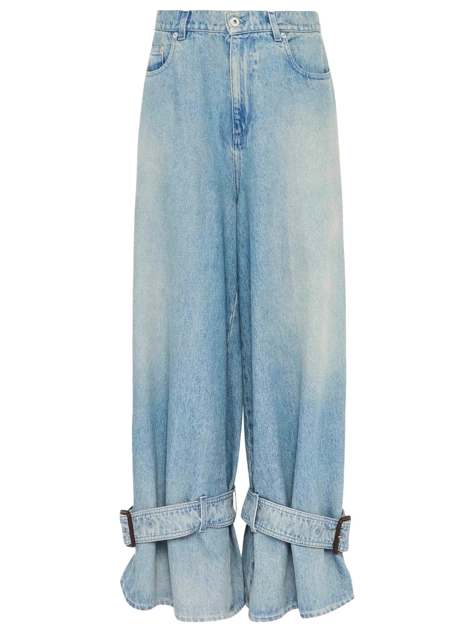 Buckled Cuff Jeans in Light Blue from J.W. Anderson Highlights - denim light blue - wide leg jeans with belted cuff detailing - mid-rise waistline - oversized fit - take your usual size Made in Italy Designer ID: DT0109 PG1735 Colour ID: 804 LIGHT BLUE Materials MAIN: 100% COTTON 6204623190.0