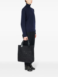 Cabas Shopping Bag Vertical in Black from Maison Margiela Highlights - black - one main compartment - internal zip pocket - magnetic closure - removable shoulder straps - embossed logo on the front - twill weave Made in Italy Designer ID: SB1WC0019P7276 Colour ID: HA200 Black/Black Materials Body: 65% Polyester, 35% Cotton Contrast: 100% Calf Leather Application: 100% Polyurethane Lining: 100% Cotton Lining: 100% Calf Leather Metallic Parts: 100% Brass