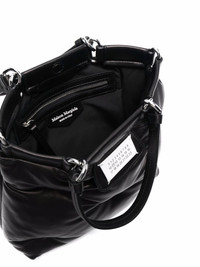 Glam Slam Small Shopping Bag in Black from Maison Margiela Highlights - black - number logo signature - top handles - adjustable shoulder strap - magnetic closure - internal zip-fastening pocket Made in Italy Designer ID: S56WD0133P4300 Color ID: T8013 Black Materials Body: 100% Ovine Leather - Application: 100% Calf Leather - Lining: 100% Polyester - Inside: 100% Ovine Leather - Metallic Parts: 100% Zinc - Metallic Parts: 65% Zinc 35% Brass - Metallic Parts: 81% Zinc 19% Brass - Metallic Parts: 100% Brass