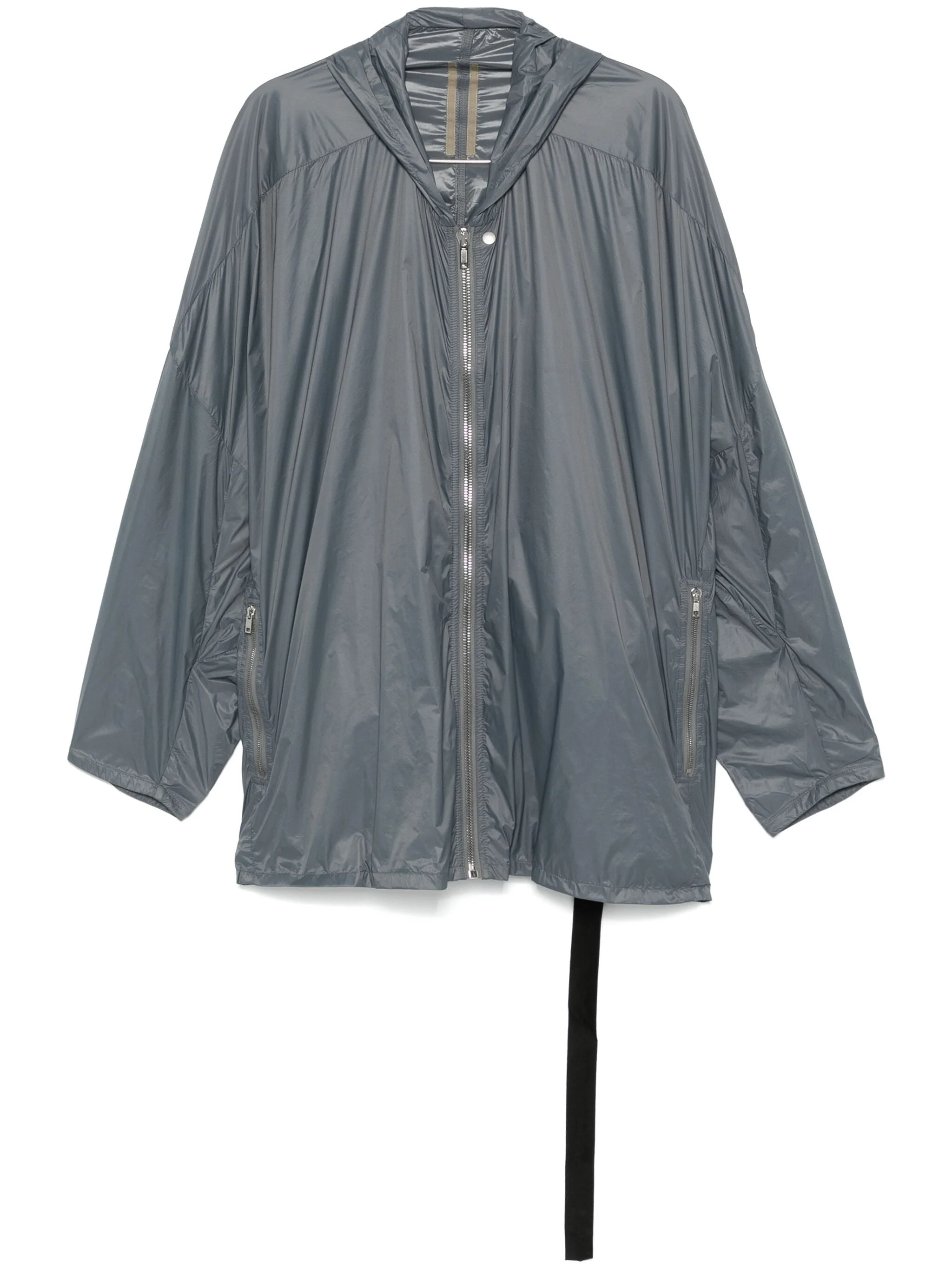 Hooded Peter Jacket in Stone from Rick Owens DRKSHDW Highlights - grey - hoodie - front zipper closure - strap detail Made in Moldova Designer ID: DU02D2785NP Colour ID: 88 STONE Materials 100% Nylon Do Not Wash / Do Not Bleach / Iron 110C (230F) Without Steam / Mild Dry Clean In Perchloroethylene / Do Not Tumble Dry /