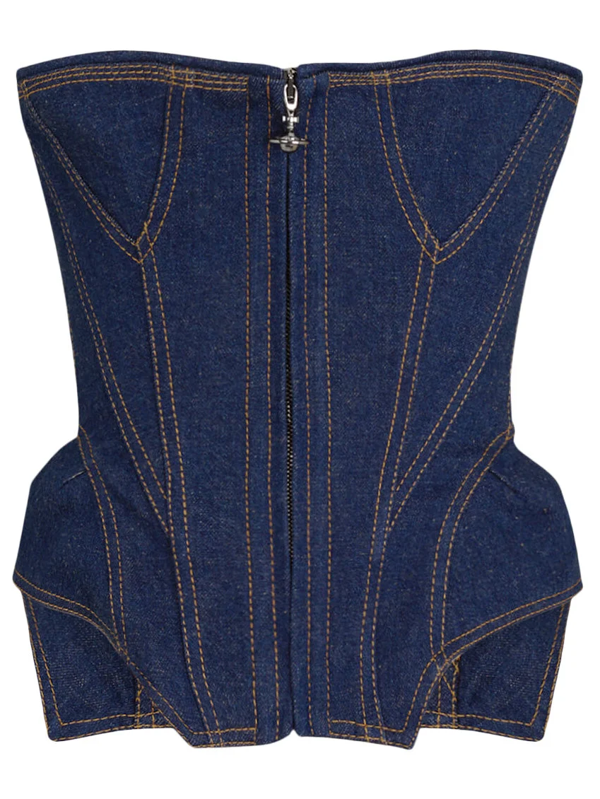 Denim Cobrax Corset in Indigo from Vivienne Westwood Highlights - dark blue - denim - strapless design - straight neckline - front zip closure - lace-up back - model is 5'11/180cm and is wearing a size 40 Made in Italy Designer ID: 15030040-W0162 Colour ID: INDIGO Materials 80% Cotton 20% Linen